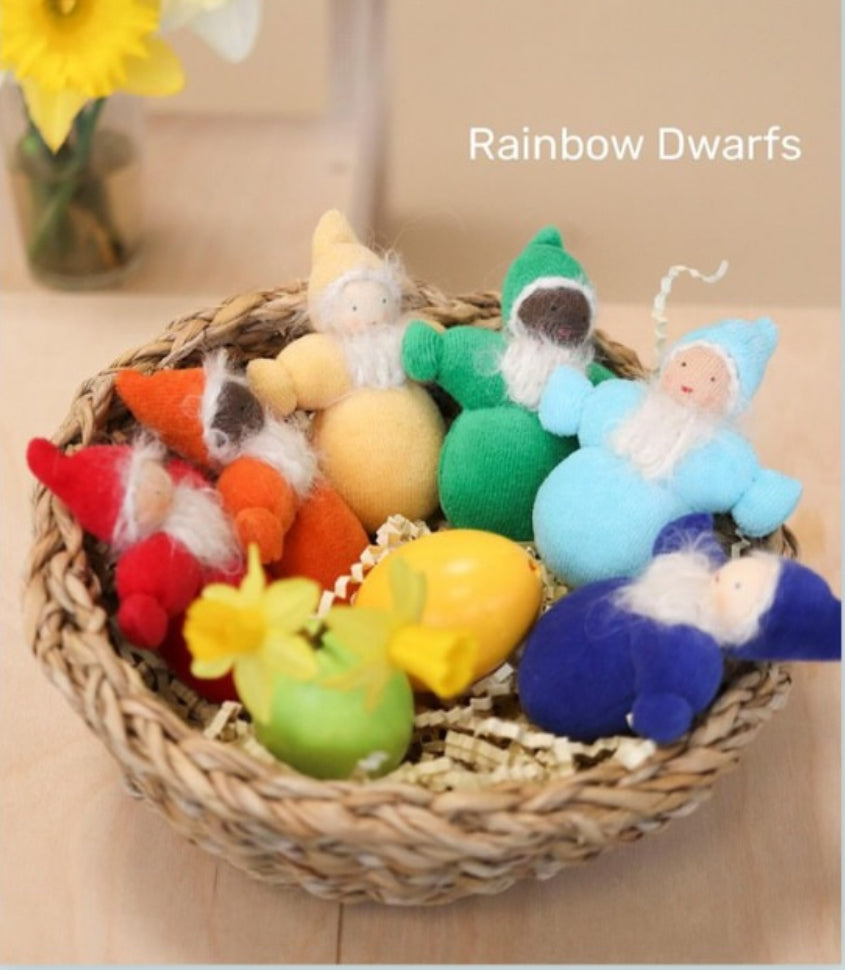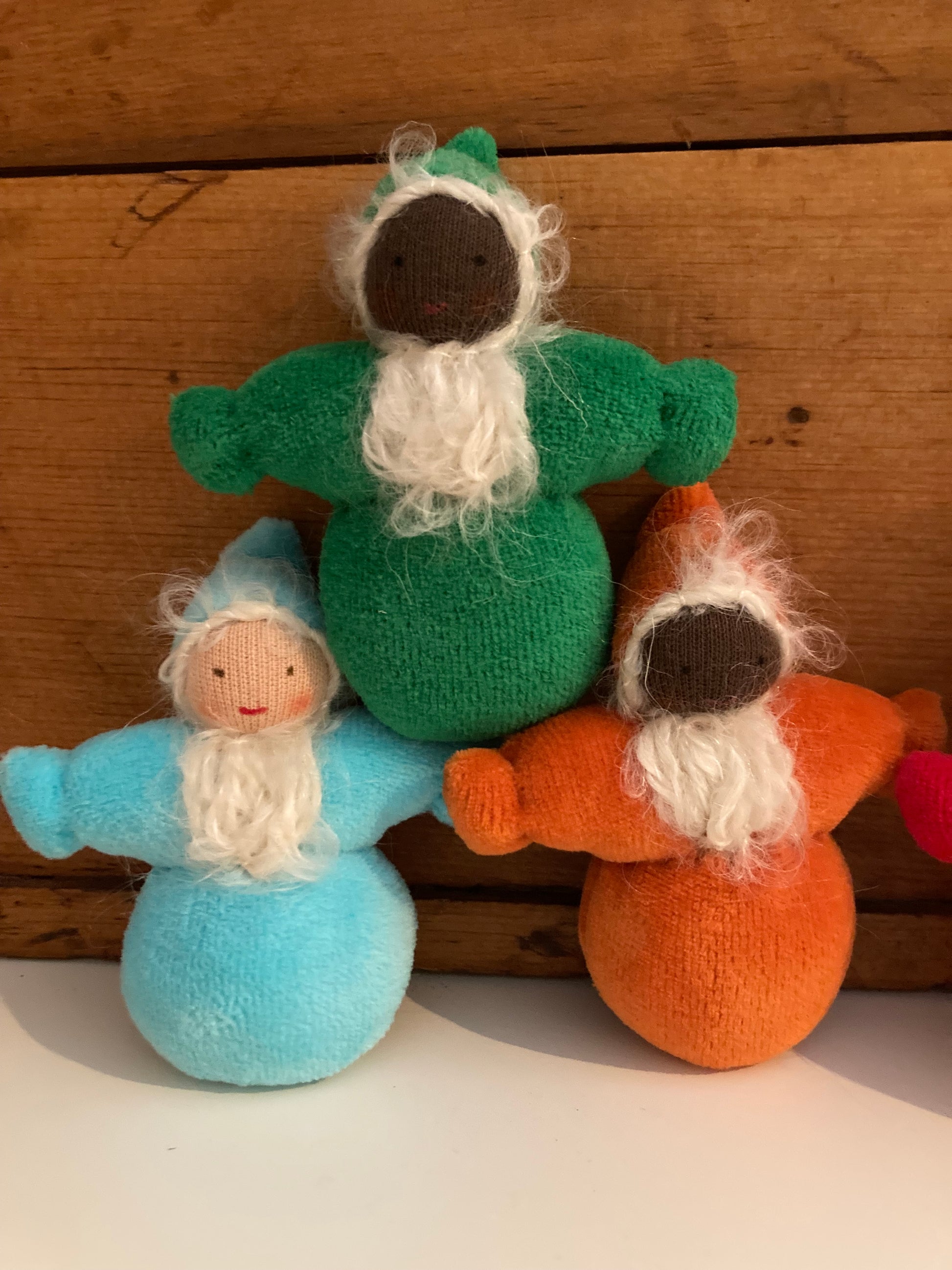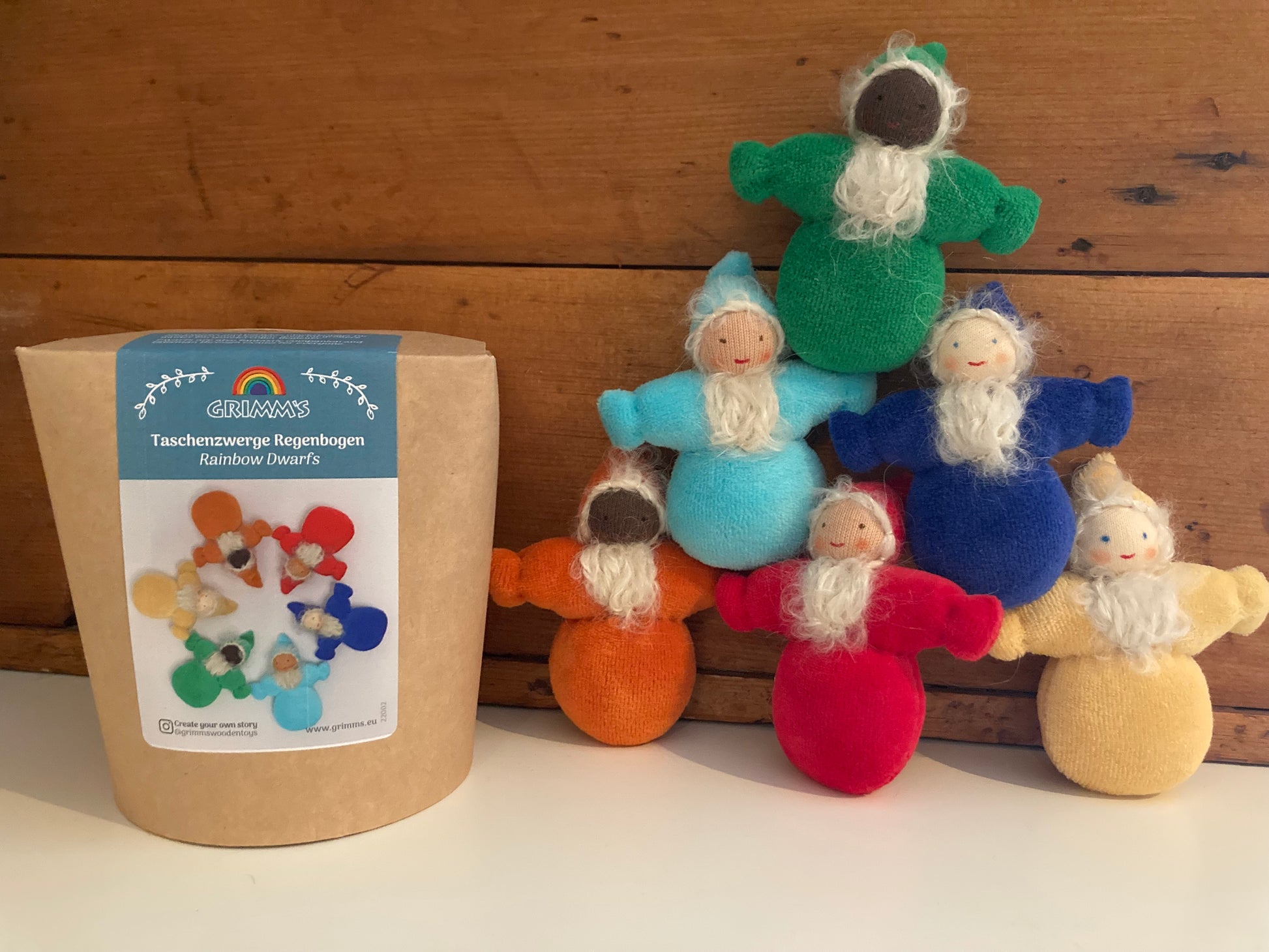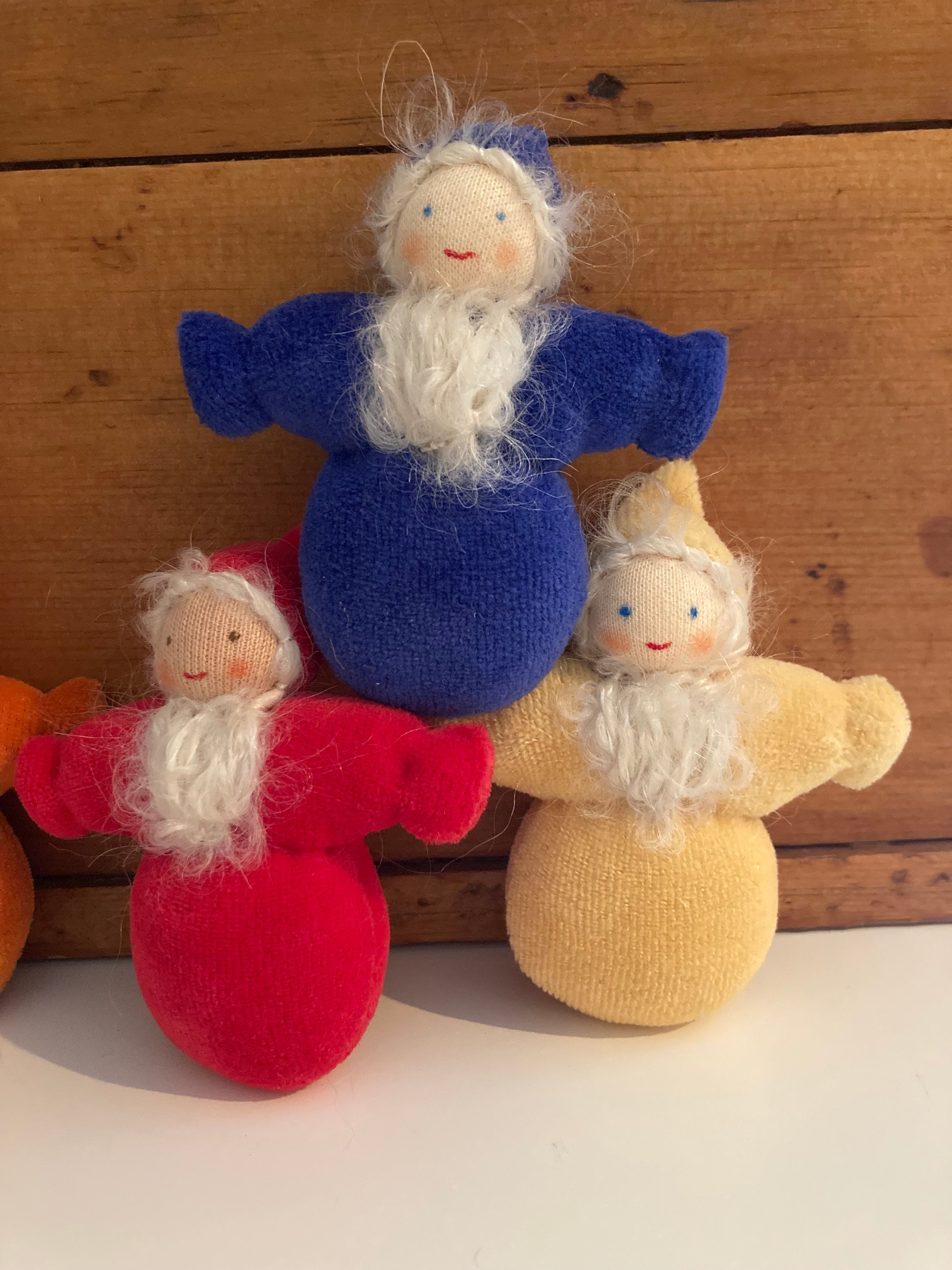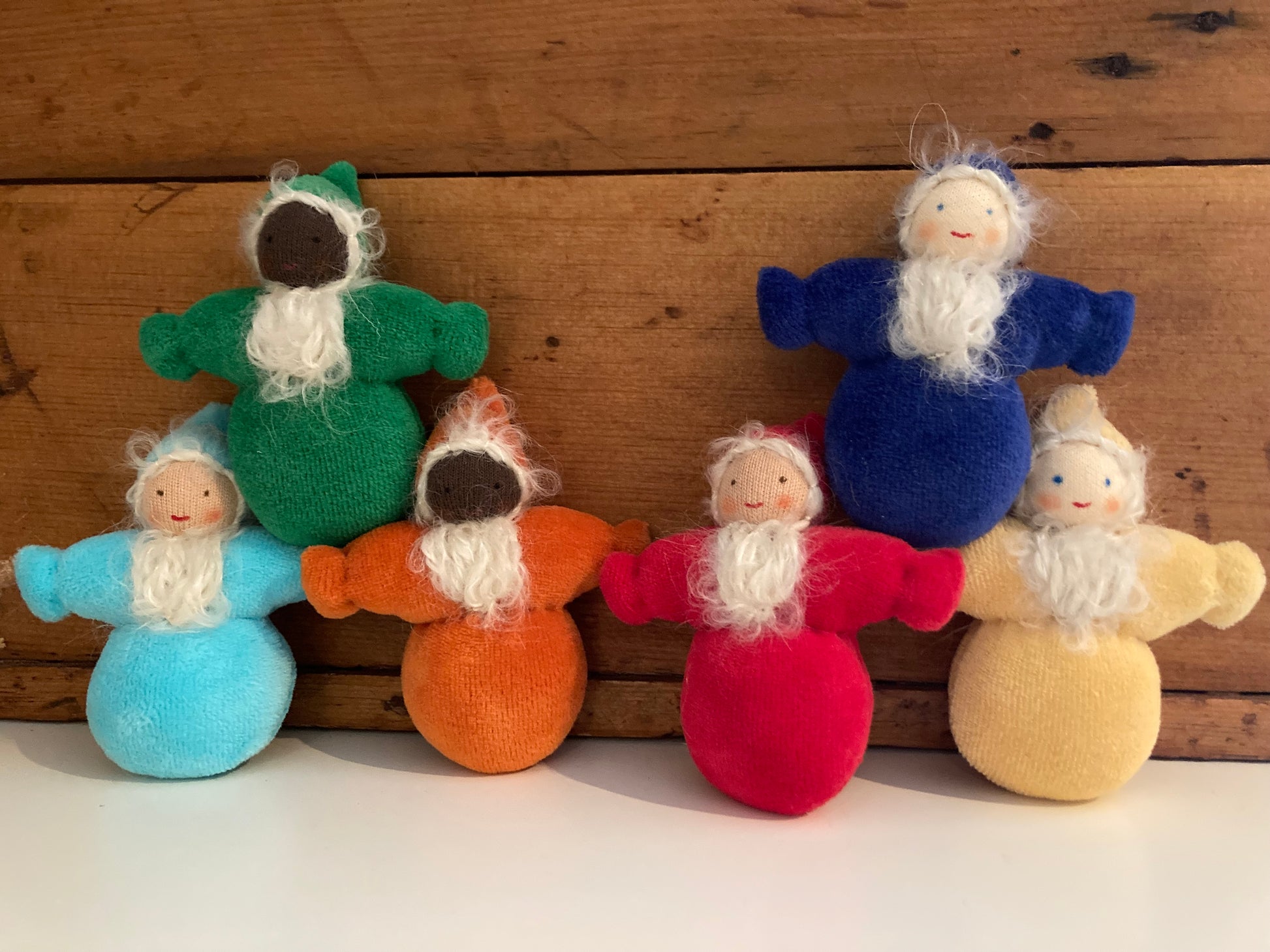 Peluche Waldorf - NAINS ET GNOMES ARC-EN-CIEL de Grimm, avec BARBE (tous les 6)