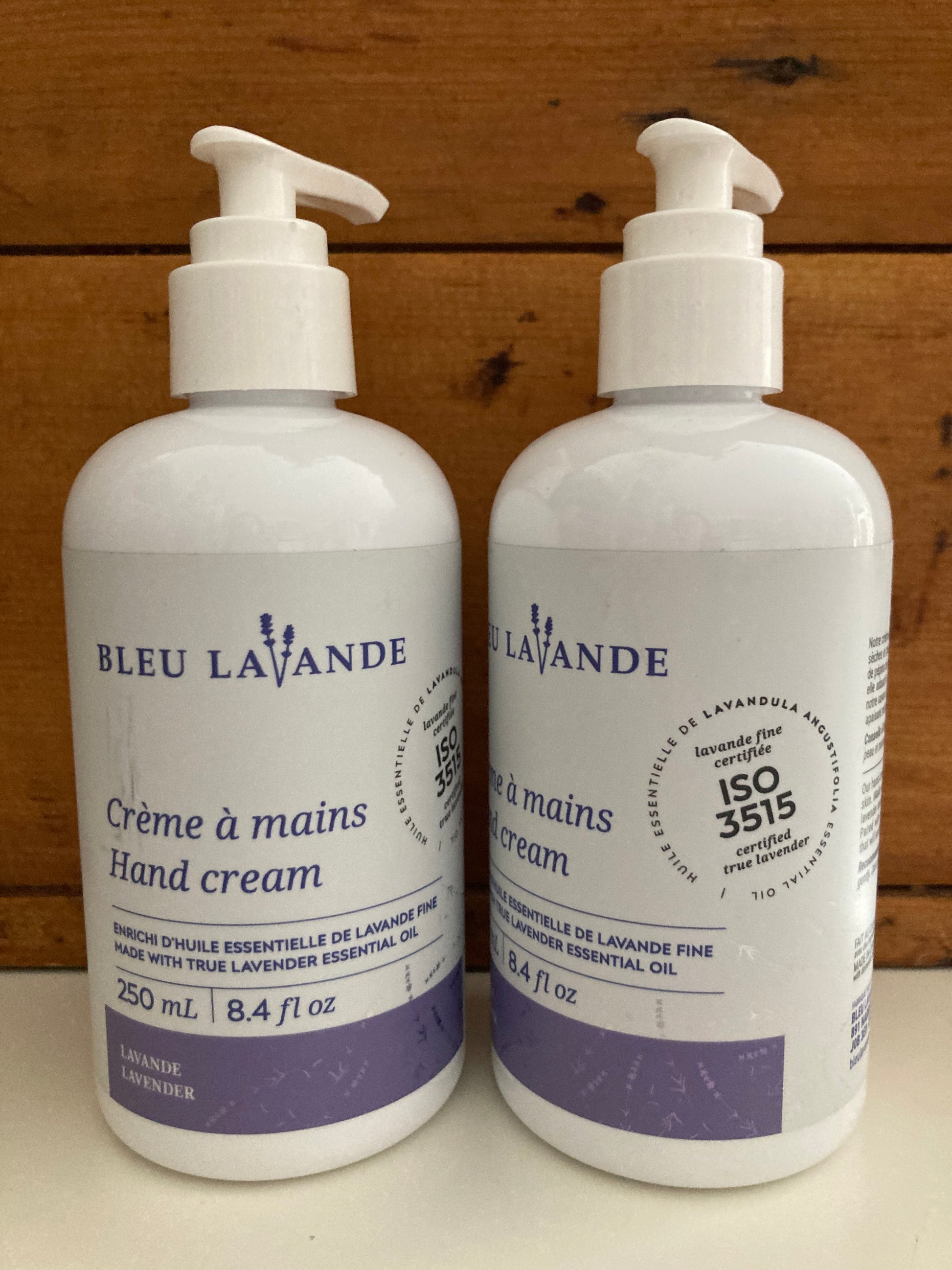 Luxueuse CRÈME POUR LES MAINS infusée d'HUILE essentielle pure de LAVANDE de Bleu Lavande. Lavande vraie certifiée.