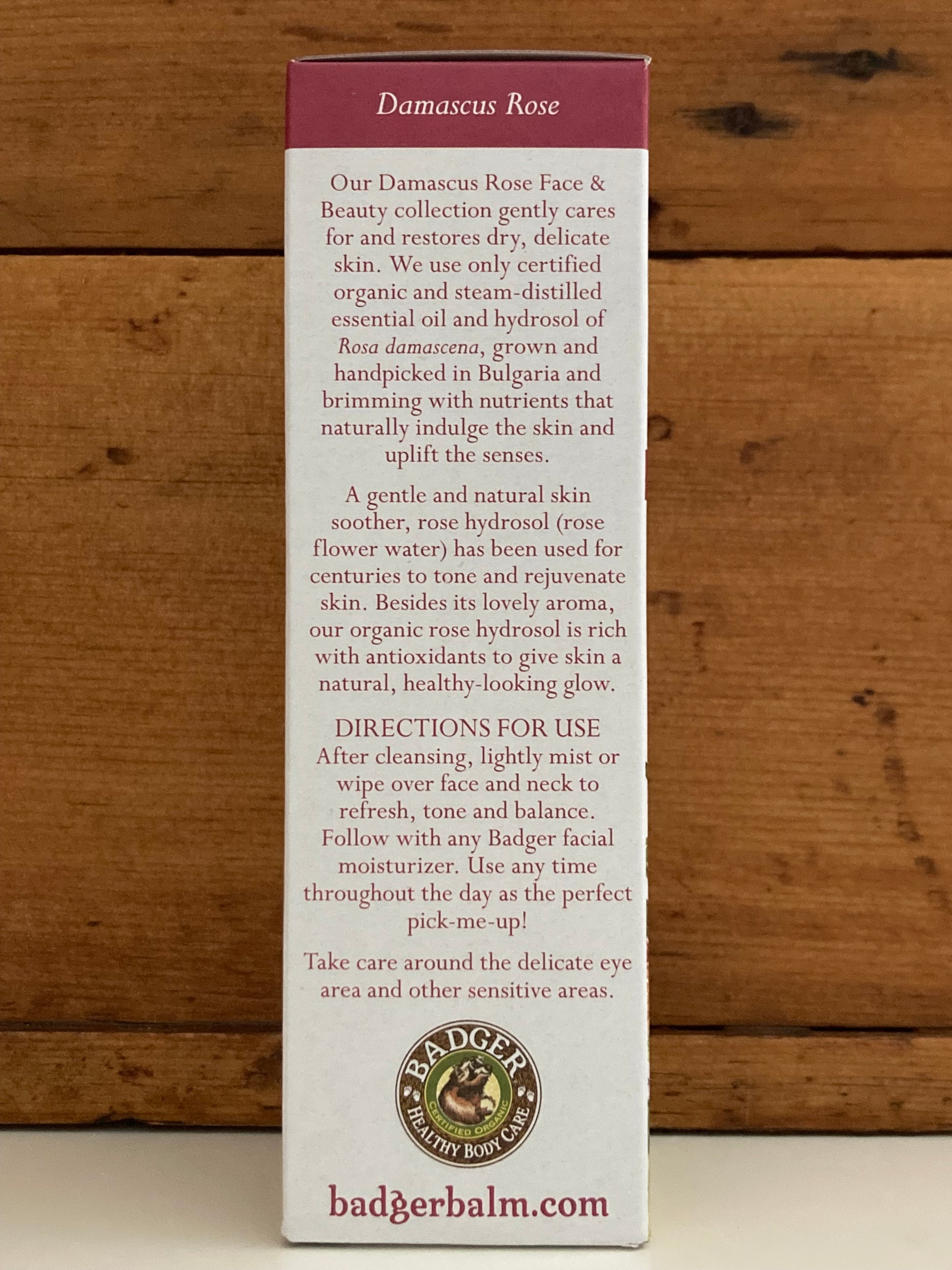 Formulé sur mesure et produit avec soin par WSBadger Co, New Hampshire. Flacon en verre, avec pompe pulvérisateur. 118 ml.