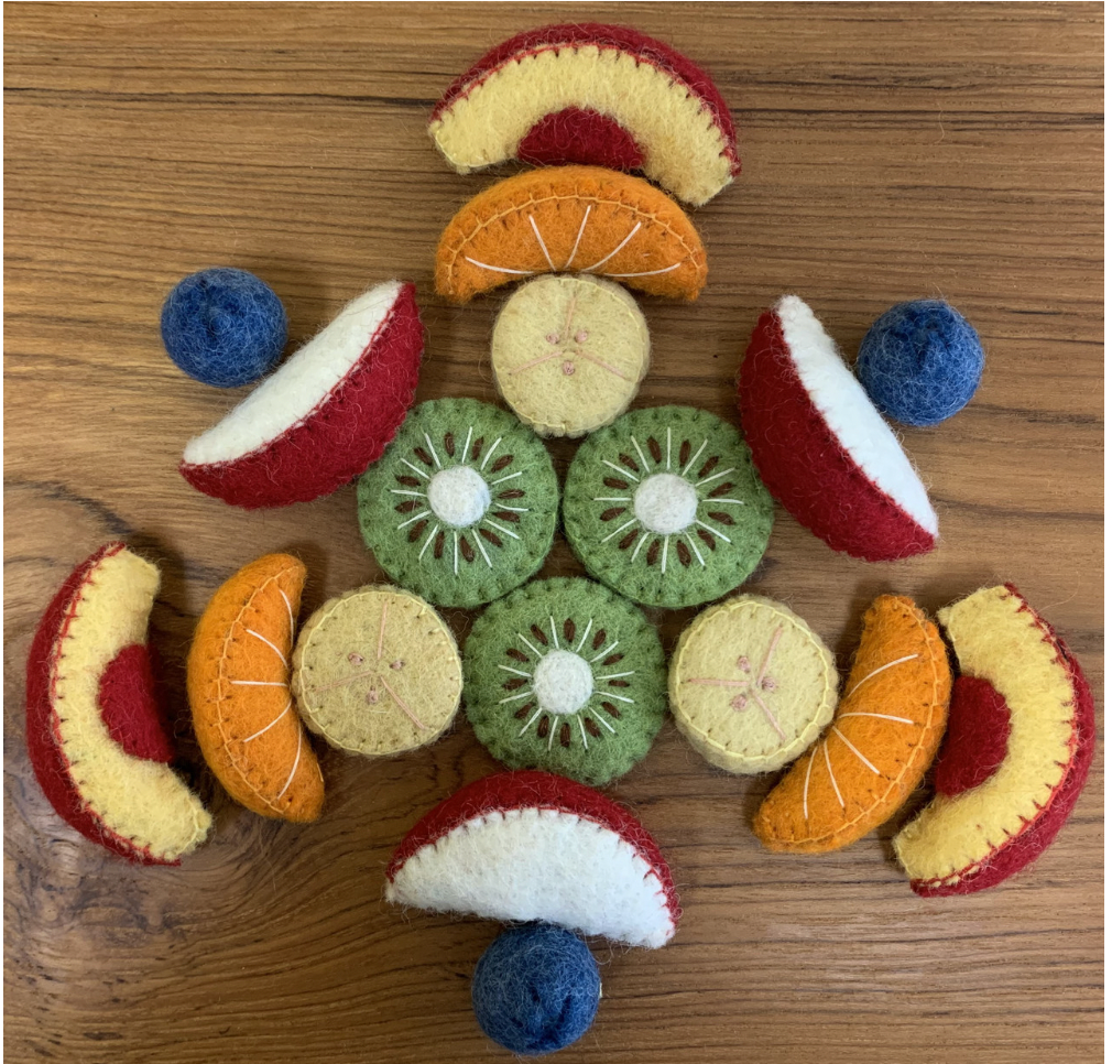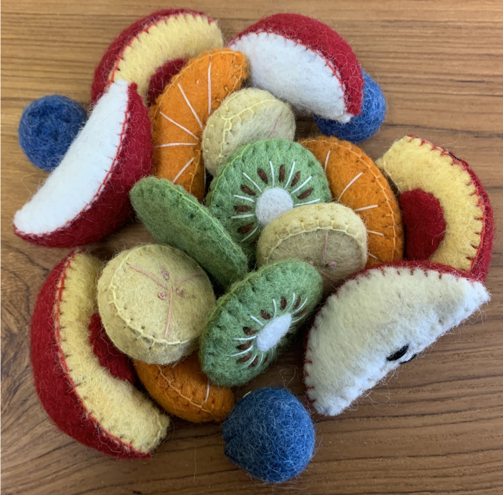 All Fruits and Vegetables are felted in 100% Wool by Papoose Toys, by their Woman's Cooperative in Nepal. All are heavy duty wool felt, made to be enjoyed for a Childhood of play.