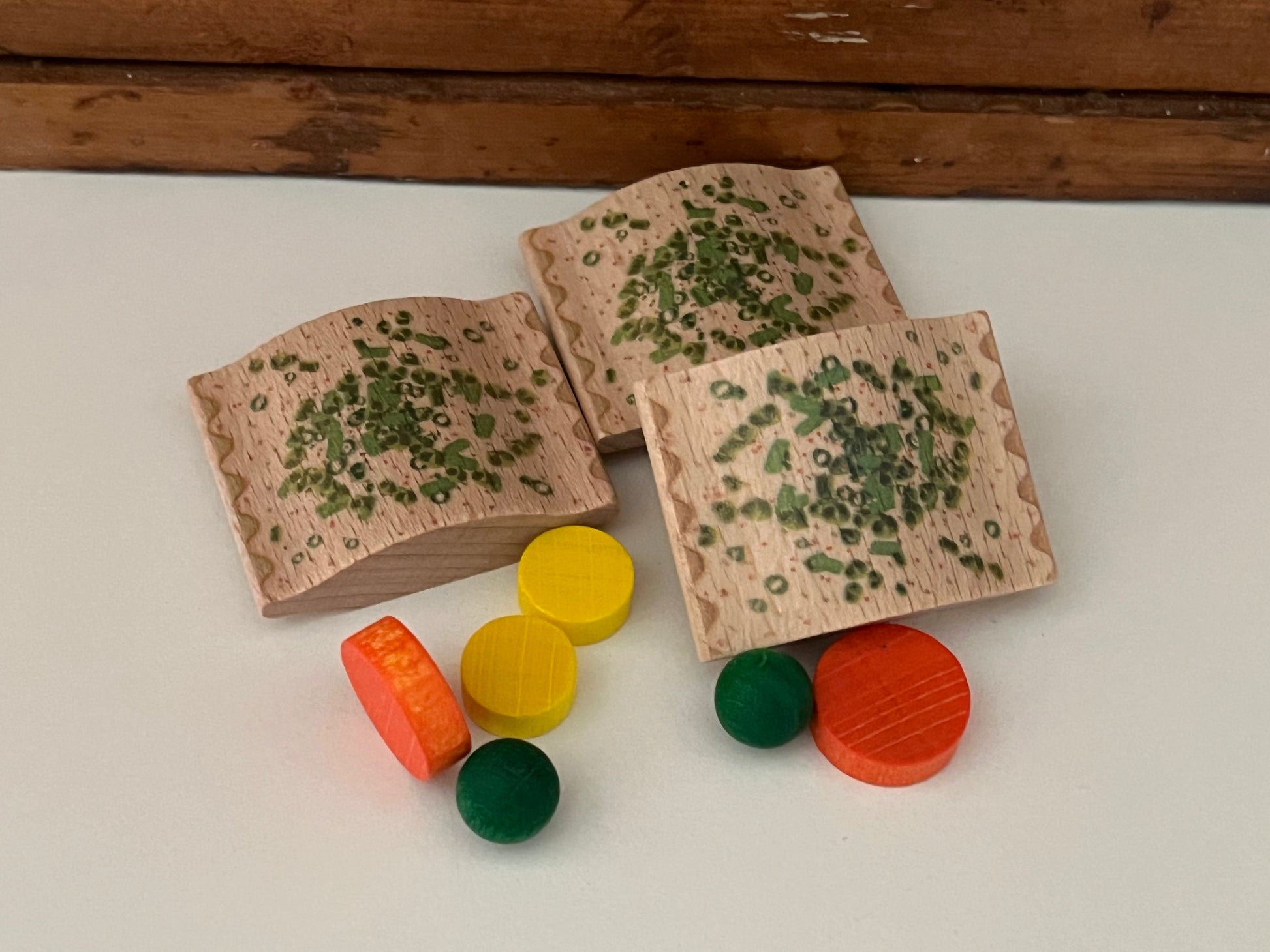 These play food toys are made from sustainably sourced beech wood in Germany, with the beautiful wood grain showing through. Smooth and tactile, these wooden foods are perfectly sized for little hands.