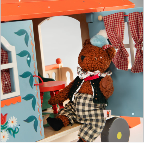 Tonight, everyone is gathering in their wooden caravan! There are delicious crêpes, and Léon has packed adventure books, and Nina has got her knitting… the perfect recipe for a magical time with friends! (Animal Dolls sold separately.)