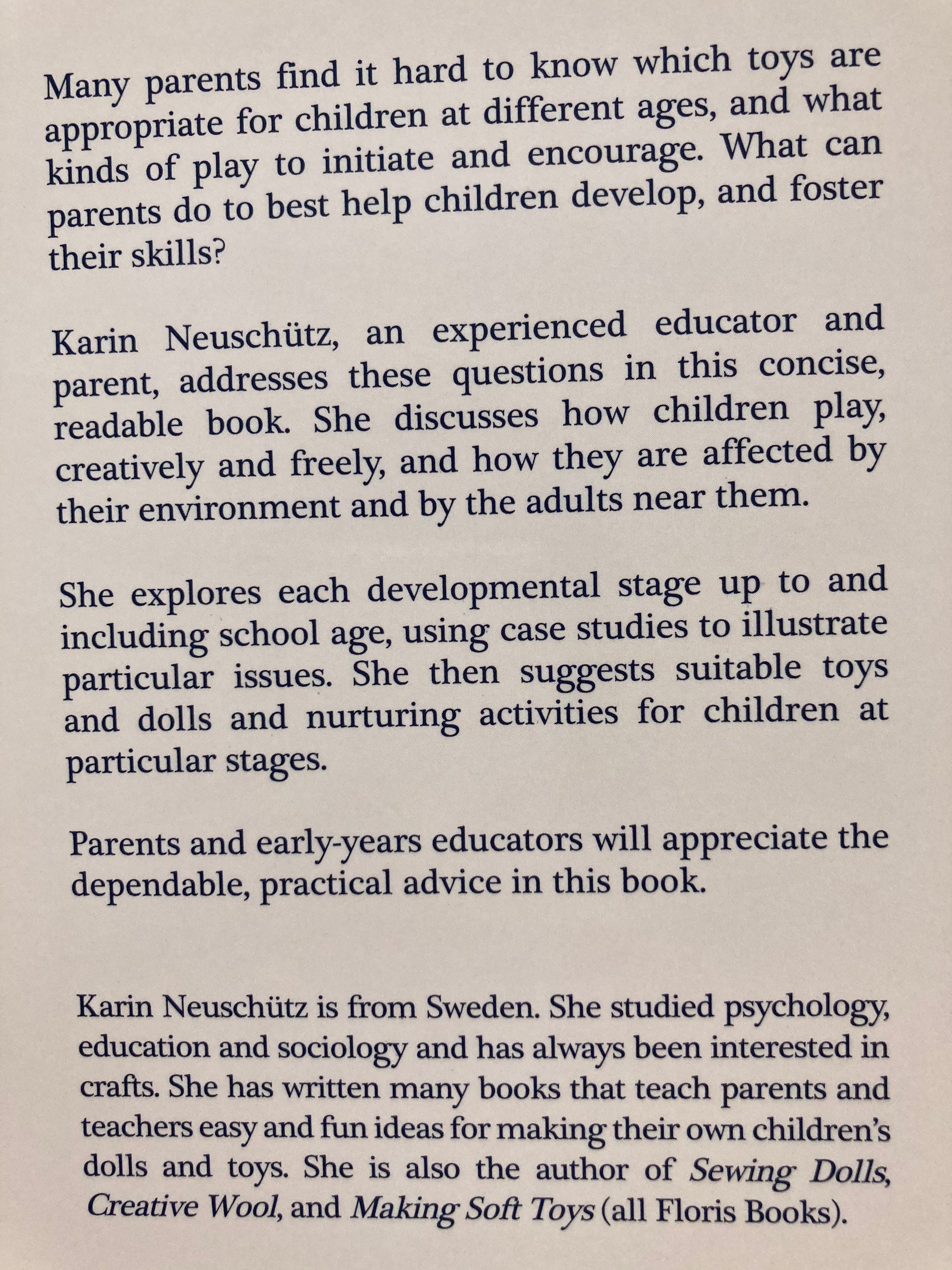 Écrit par une éducatrice expérimentée, Karin Neuschutz, qui a également écrit des livres contenant des idées amusantes et faciles permettant aux parents de fabriquer leurs propres poupées et jouets pour enfants. Tous vendus séparément. Voir tous les livres de ressources parentales .
