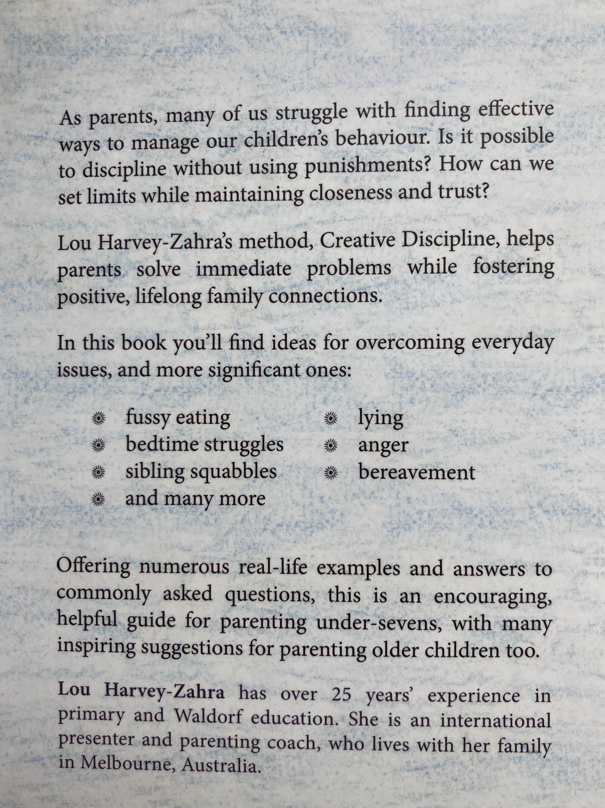 Les deux livres ont été écrits par Lou Harvey-Zahra, une enseignante Waldorf formée. Elle anime désormais des ateliers sur la parentalité consciente et la discipline créative pour les parents.