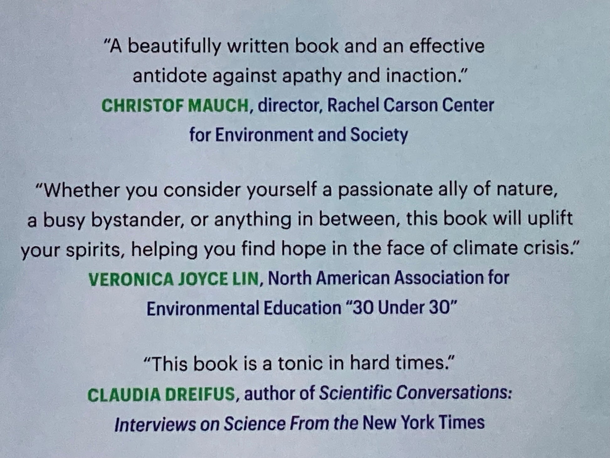 Ce livre a été choisi, parmi tant d'ouvrages importants et bien écrits sur la crise environnementale actuelle, parce que l'auteur aborde les préoccupations des enfants, en particulier, qu'ils expriment à leurs parents concernant l'avenir et à quel point ils se sentent désespérés !
