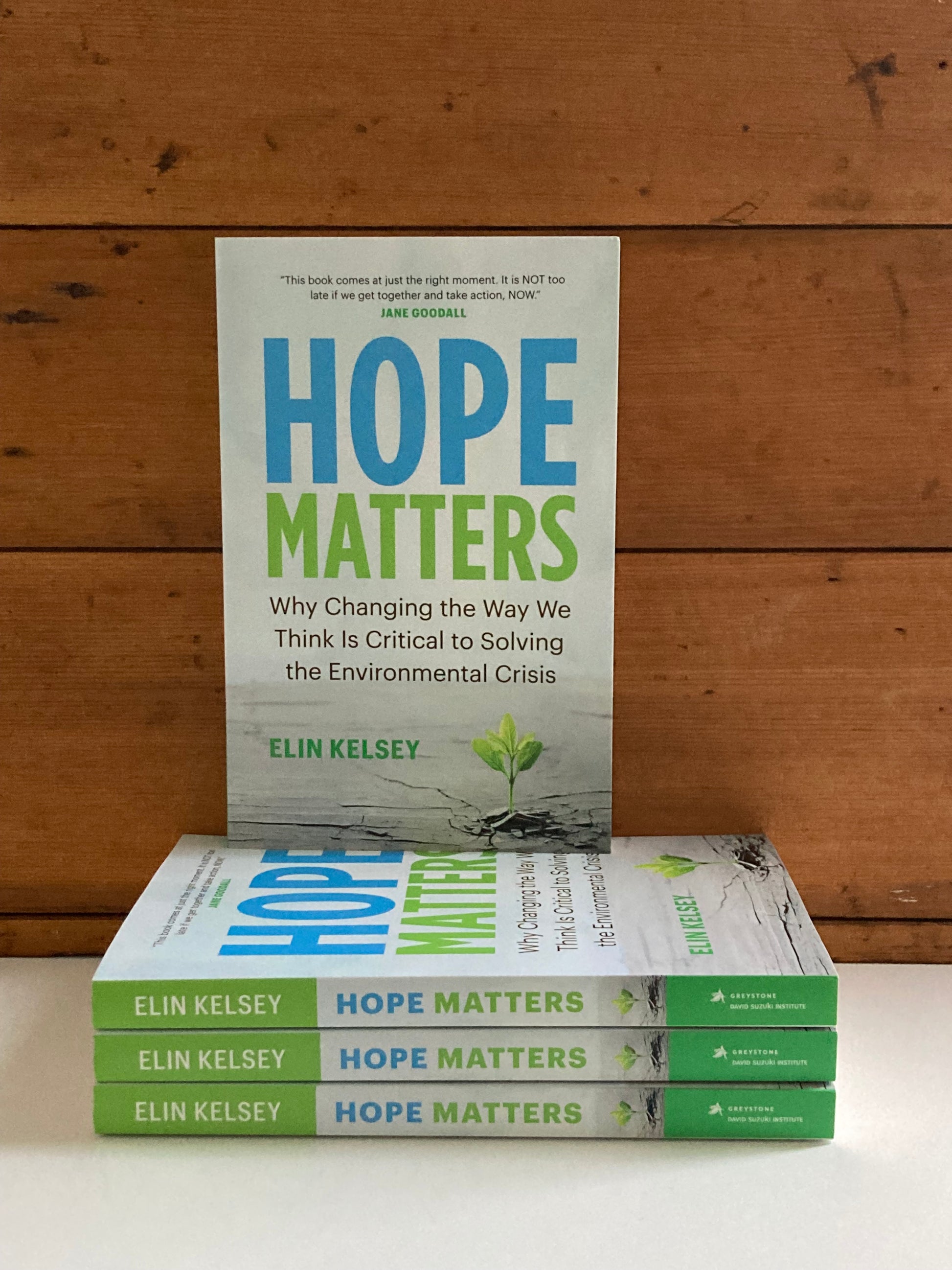 HOPE MATTERS, Why Change the Way We Think Is Critical to Solving the Environmental Crisis est écrit par Elin Kelsey, Ph.D., éducatrice et auteure primée, de Victoria, en Colombie-Britannique. Publié avec le soutien de l'Institut David Susuki. Consultez www.davidsuzukiinstitute.ca pour plus d’informations.