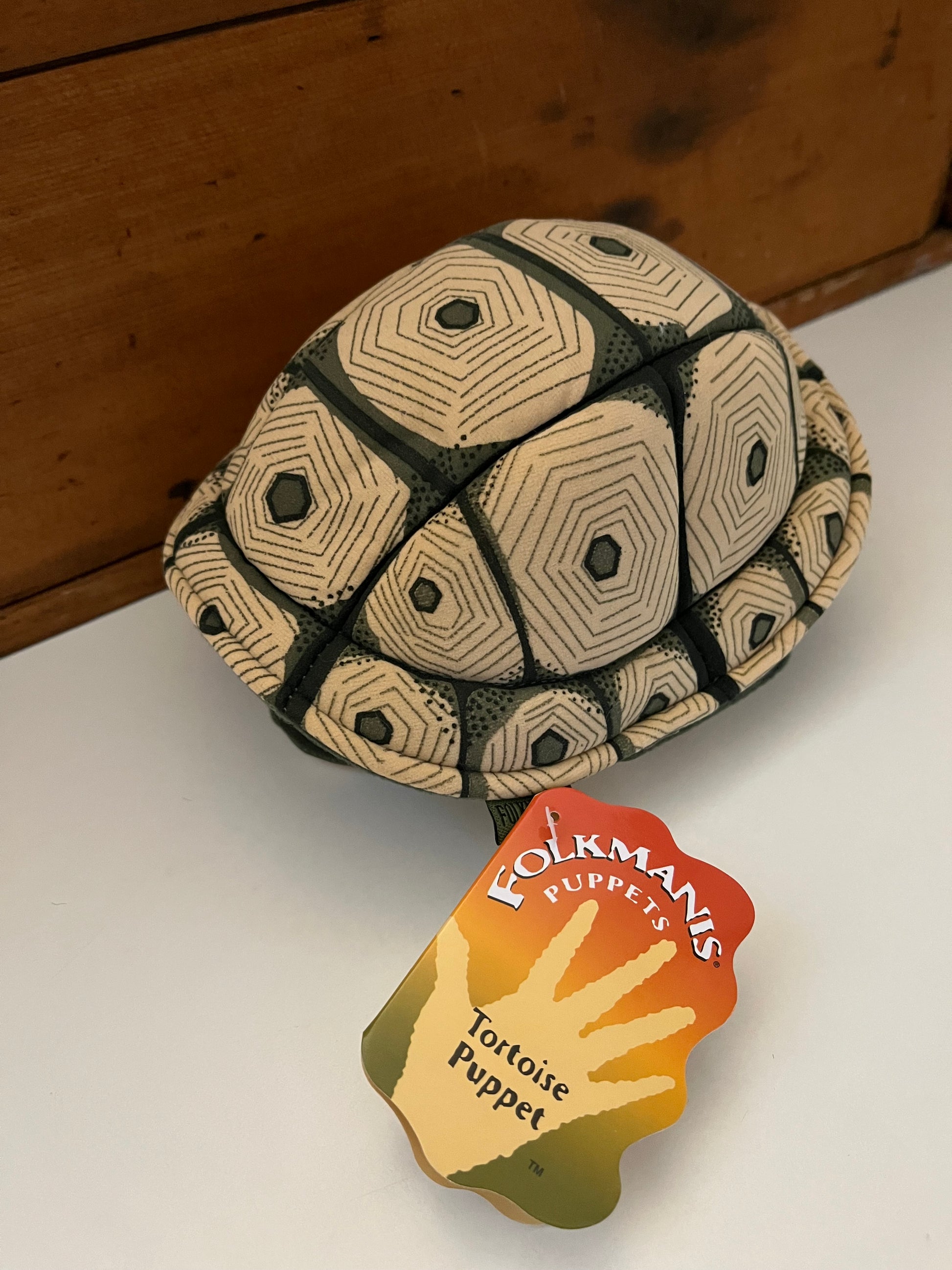 Is this TORTOISE HAND PUPPET looking for a hare to race? This silk-screened, suede-cloth puppet is just one step away from nature. Its' head and front legs articulate or retract into the shell completely... just like they do in real life!