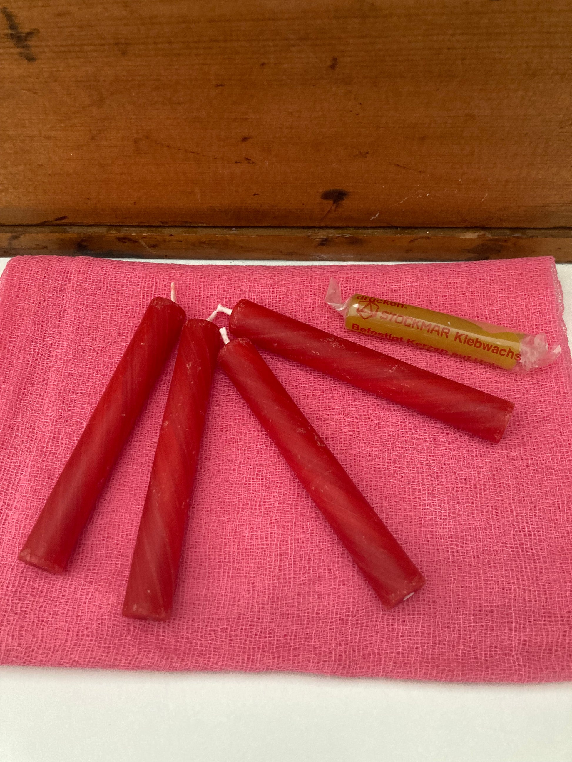 Bougies en cire d'abeille - 4 petites BOUGIES ROUGES et cire collante (10 cm/4 pouces)