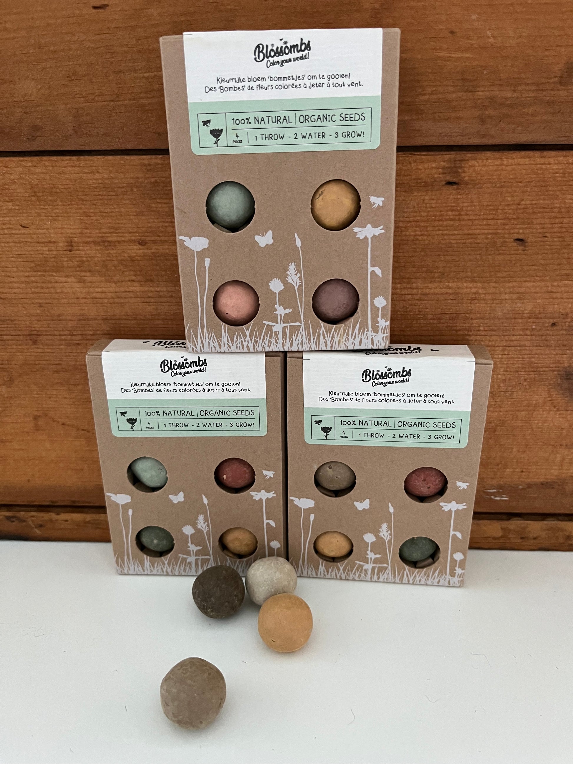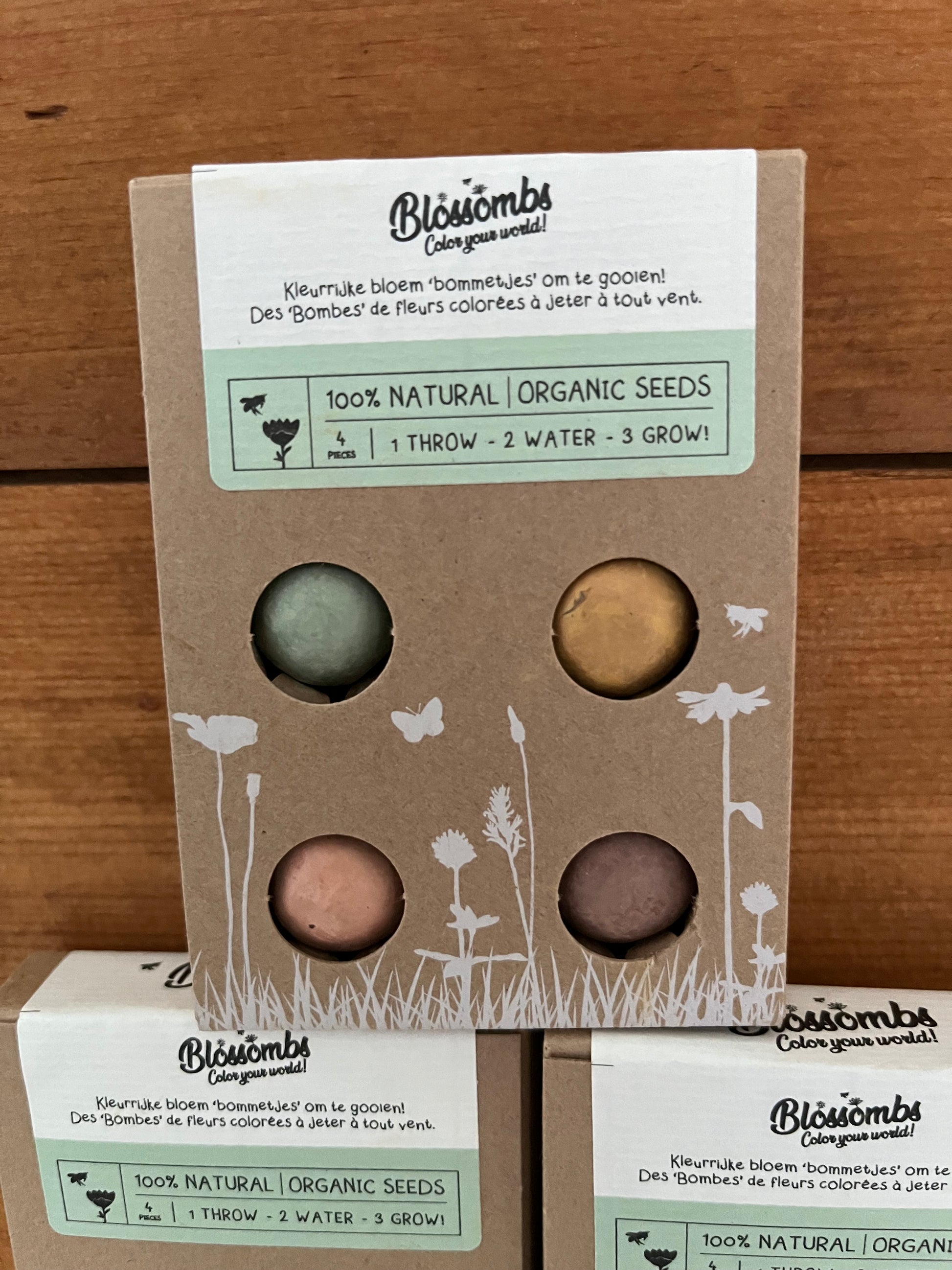 Les GOUSSES DE GRAINES Blossombombs sont des « gousses » de fleurs colorées fabriquées aux Pays-Bas avec des ingrédients 100 % naturels et un mélange de graines de fleurs sauvages biologiques - spécialement pour les abeilles et les papillons. Redonnez du bonheur à votre jardin avec les couleurs des fleurs et des insectes qui y viennent !