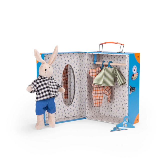 Soft Rag Doll - RABBIT with CLOTHES and CARRYING CASE