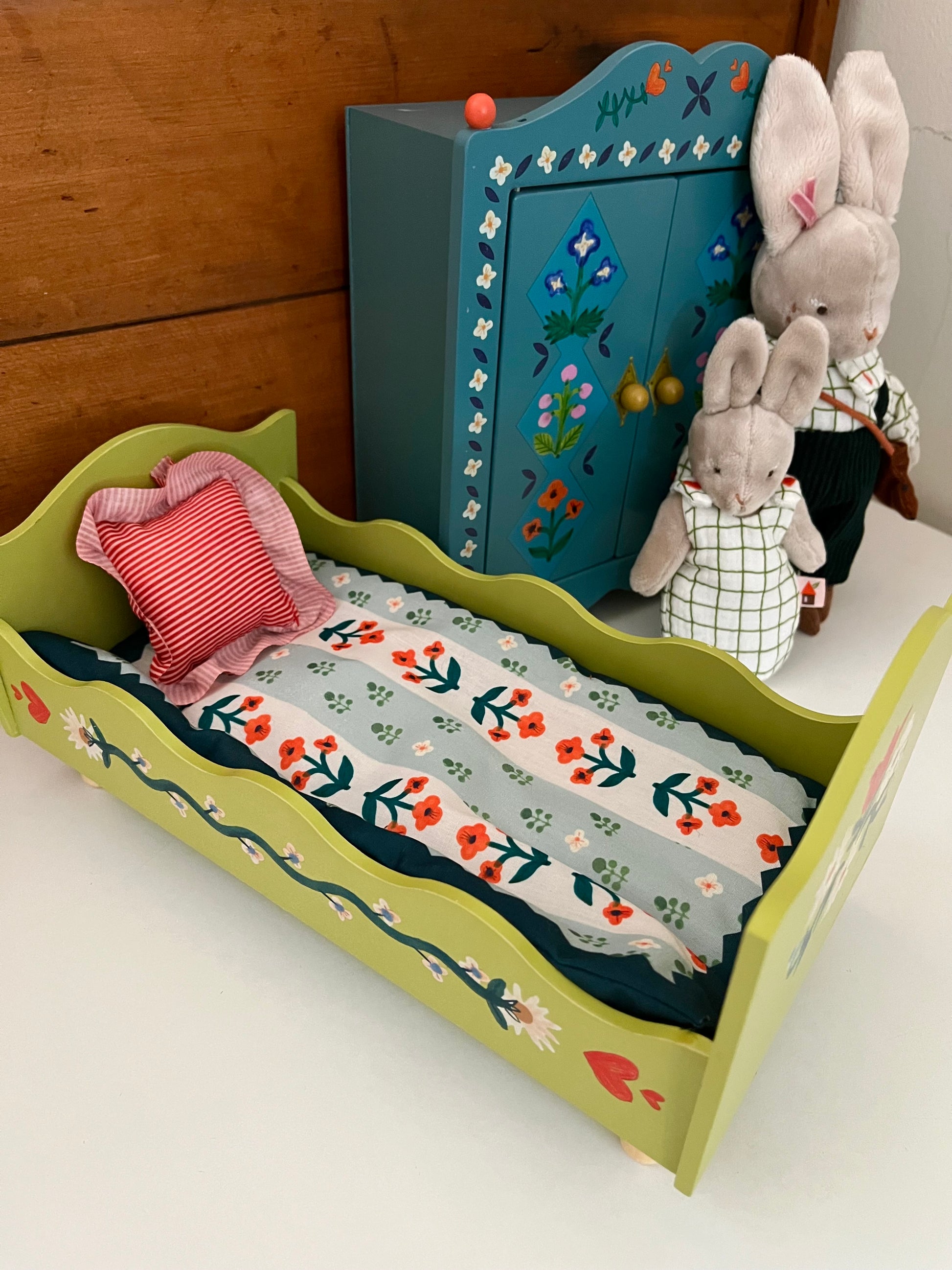 Have a look at more from the joyful Minouchkas Collection, sweet little stuffed dolls and wooden furniture to fit them, all designed by French artist, Lucille Michieli!