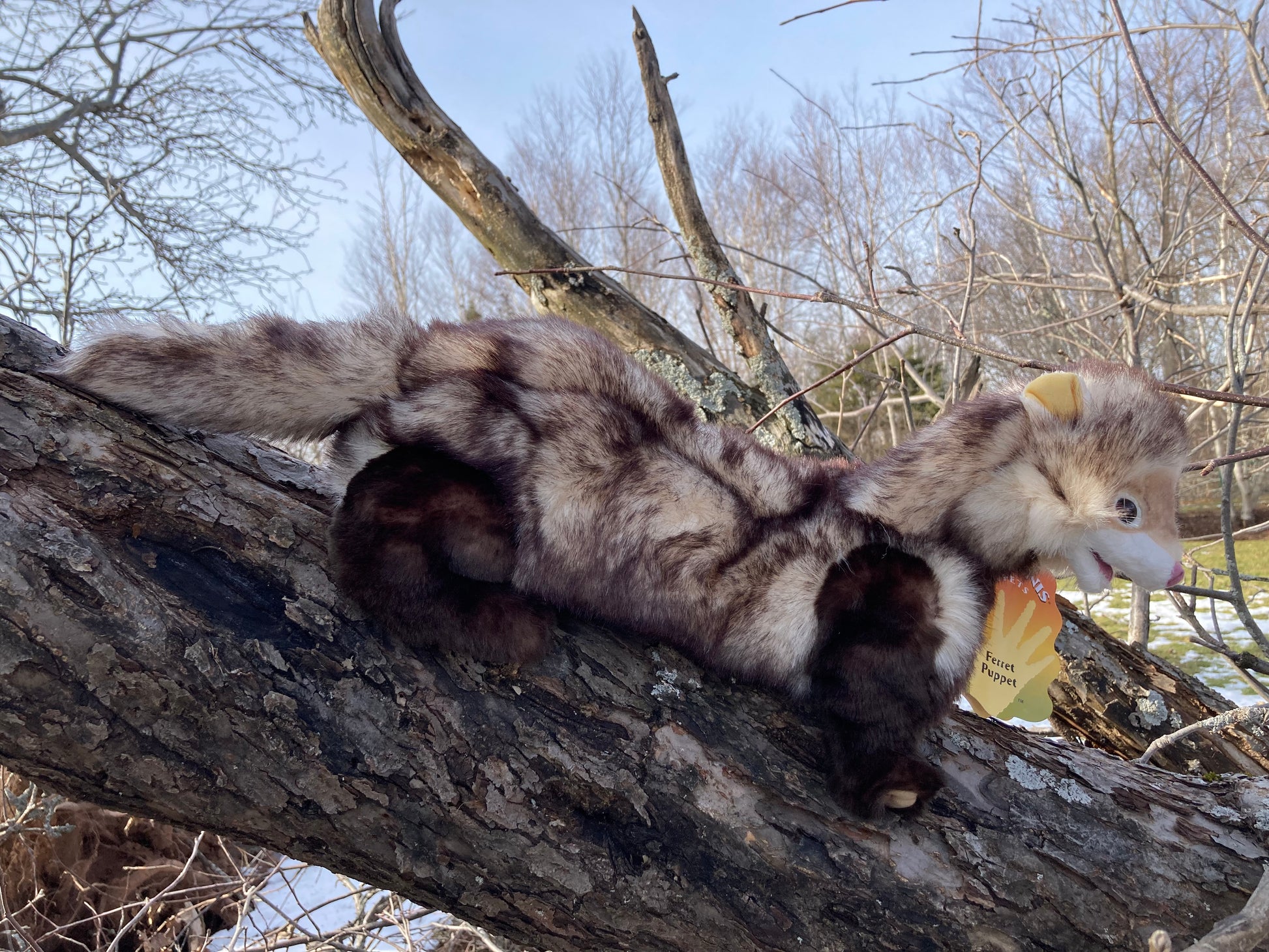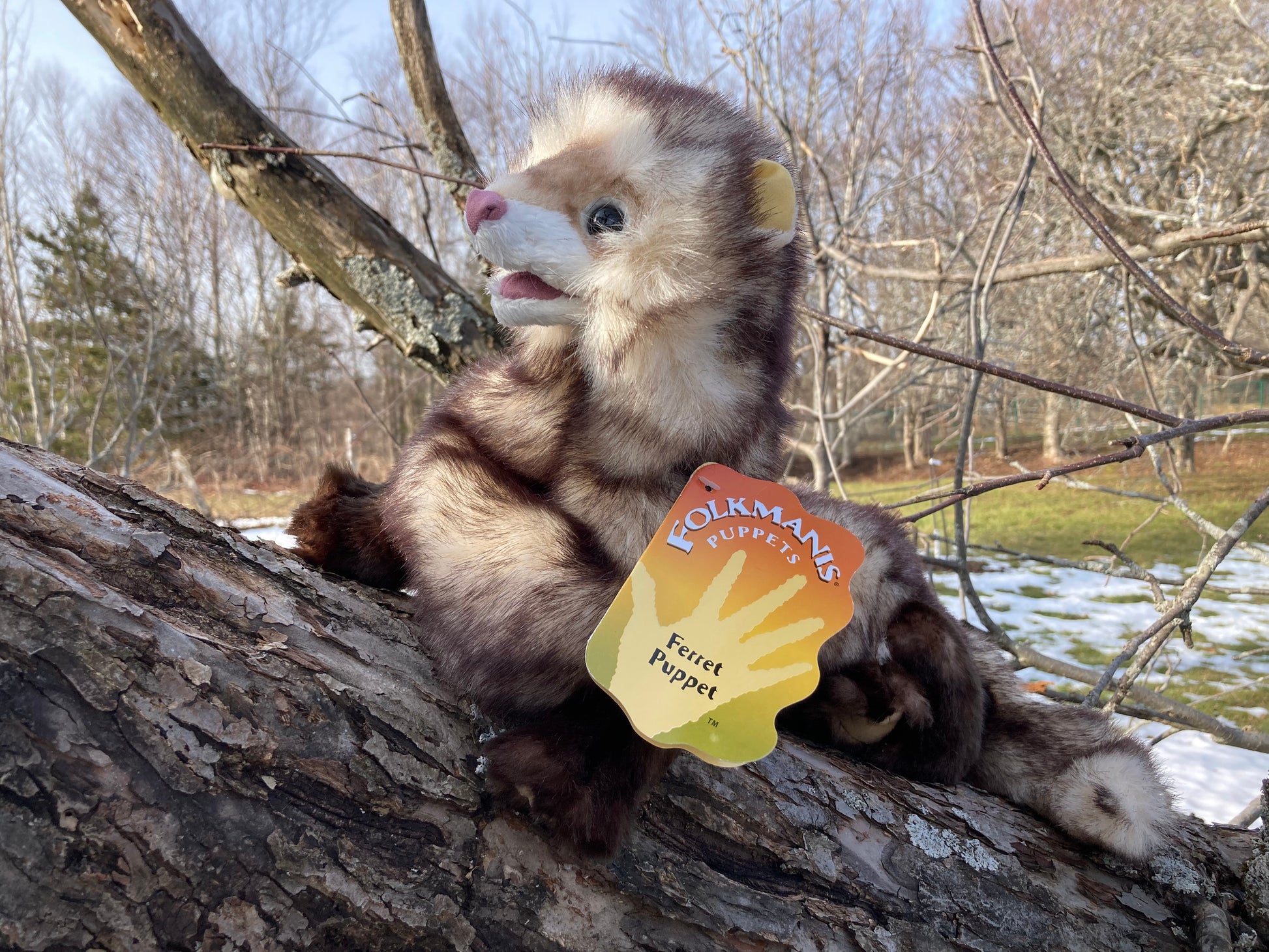 Il s’agit de leur marionnette à main FERRET très réaliste. En taille réelle aussi ! Ils font partie de la famille des belettes. Saviez-vous que les furets peuvent se faufiler dans un trou de moins de 2 pouces de large ! Et certaines personnes pensent qu’ils font d’excellents animaux de compagnie !