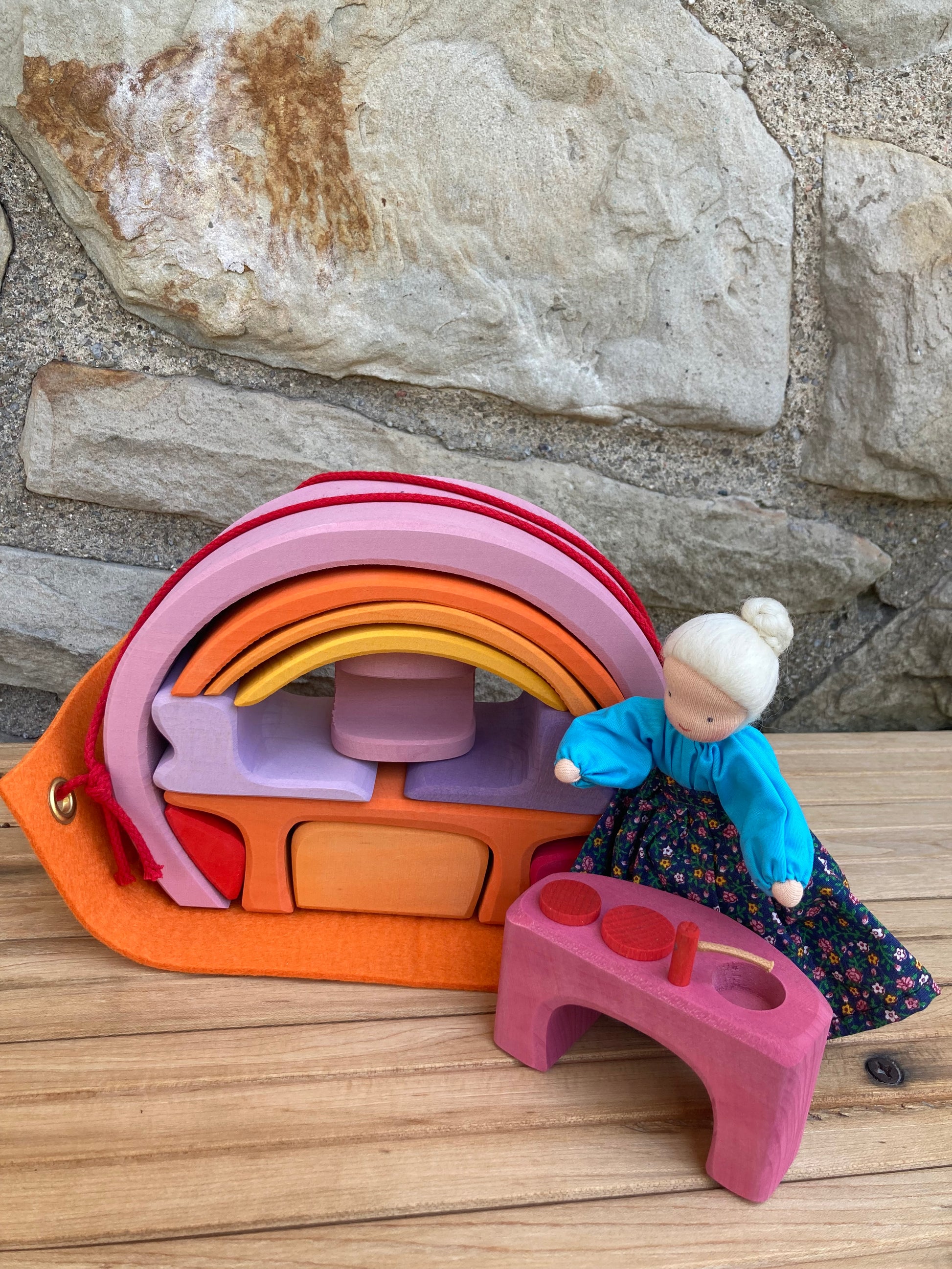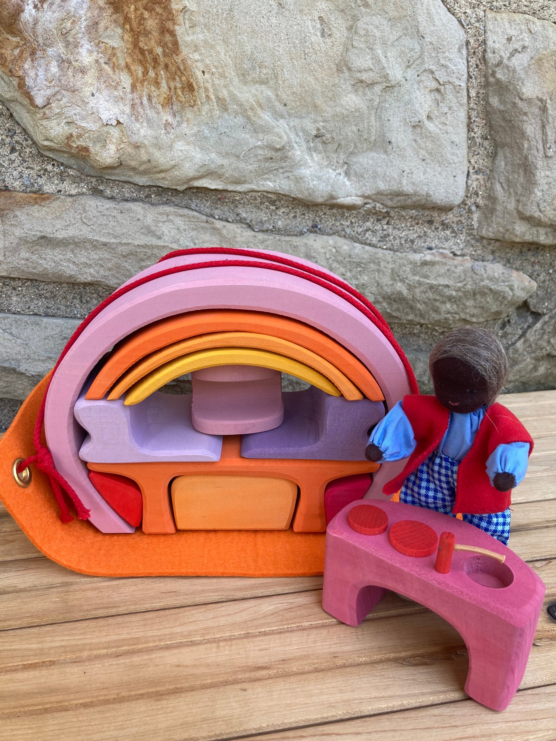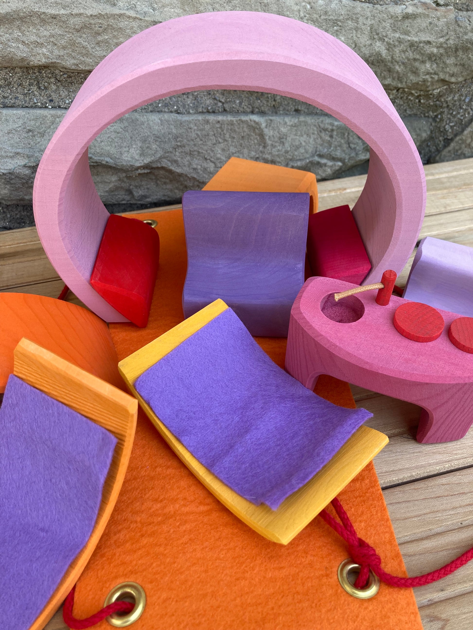 Ensemble de maison de poupée en bois - MAISON DE POUPÉE MOBILE TOUT-EN-UN