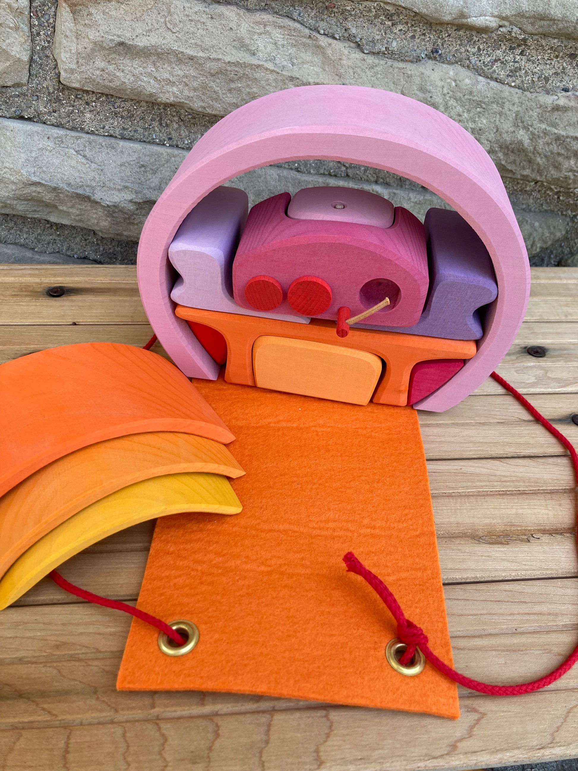 Issue de l'atelier de menuiserie de Grimm, cette astucieuse MAISON DE POUPÉE MOBILE. Une maison de poupée TOUT-EN-UN entièrement en bois de 14 pièces, avec une sangle de transport en feutre de laine, qui sert également de tapis d'aire de jeu pour l'installation de la maison de poupée. Toutes les pièces en bois sont très intelligemment réassemblées comme un puzzle en bois cool !