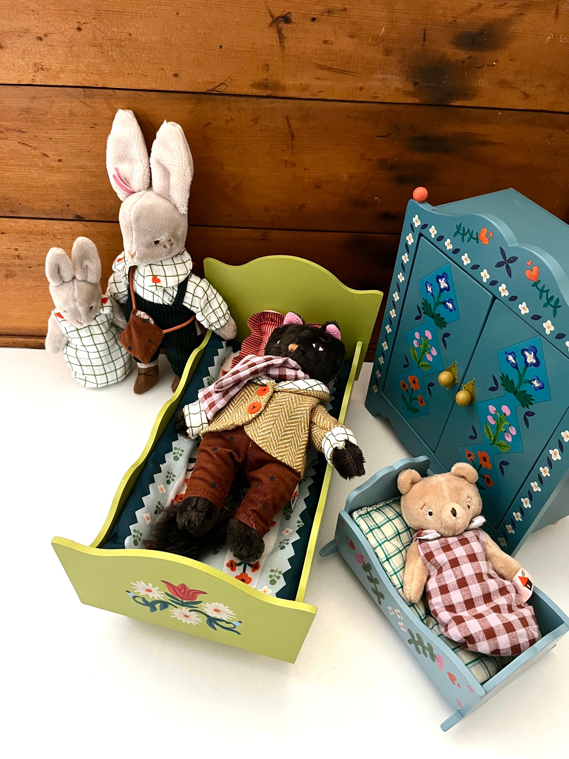 Doll Furniture - Les Minouchkas WOODEN CRADLE, with Mattress