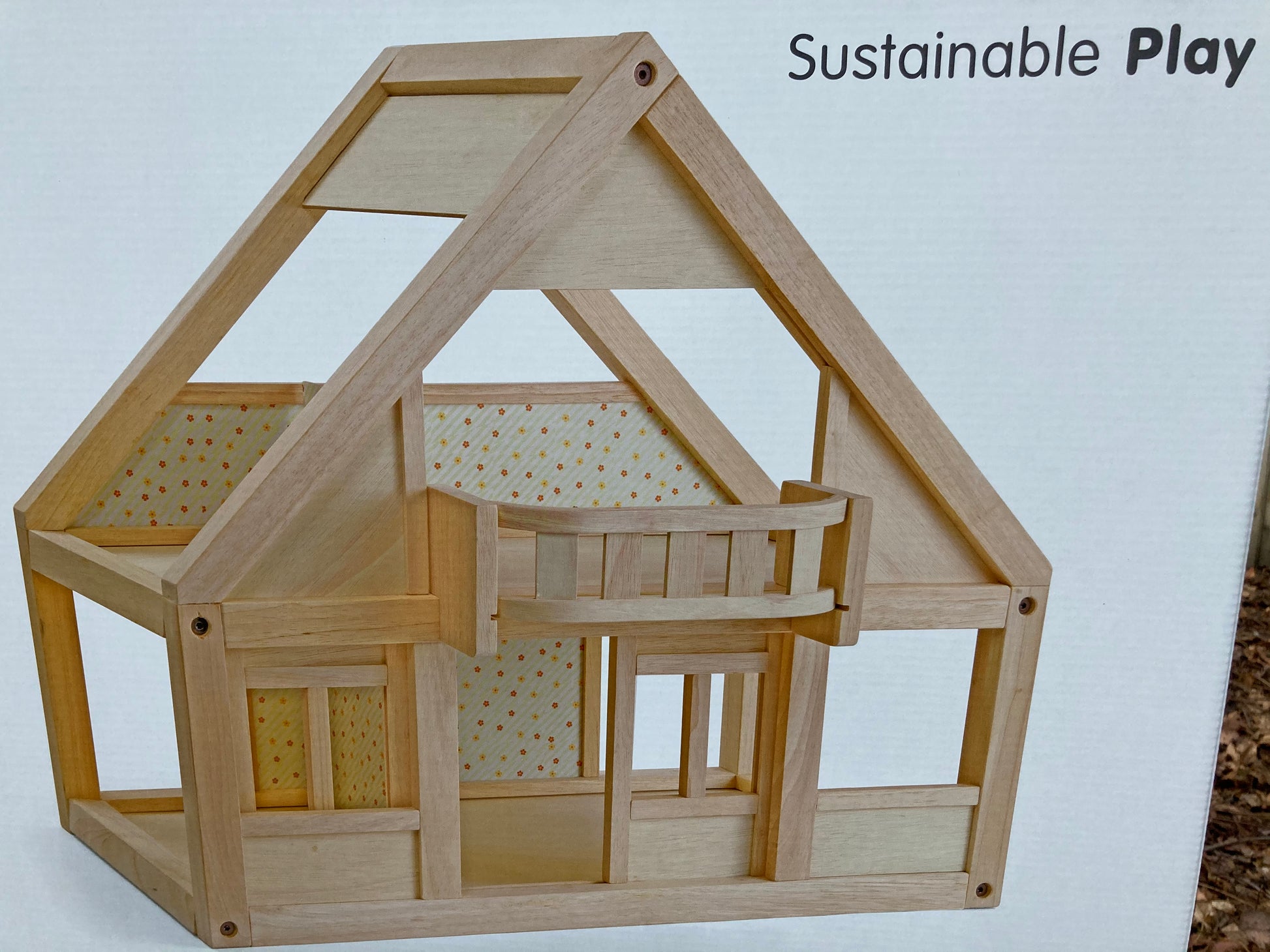 Il n'y a pas de petites pièces, joints visibles, charnières, sauf les 5 vis visibles à l'avant et à l'arrière de la maison. Une colle sans formaldéhyde est utilisée. Des ensembles de meubles en bois et des poupées pour maison de poupée sont disponibles. Vendu séparément. Voir toute notre collection de maisons de poupées en bois .