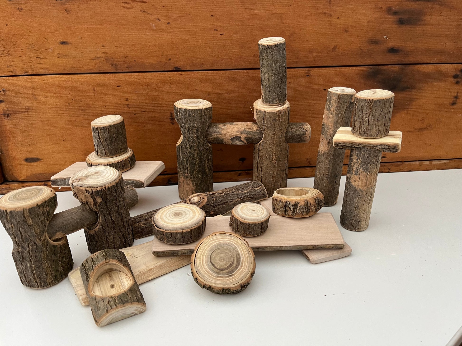 Les véritables BLOCS DE CONSTRUCTION EN BOIS DE BRANCHES D'ÉCORCE sont tout simplement cool et offrent aux jeunes enfants un élément tactile supplémentaire à leurs projets de construction imaginatifs !