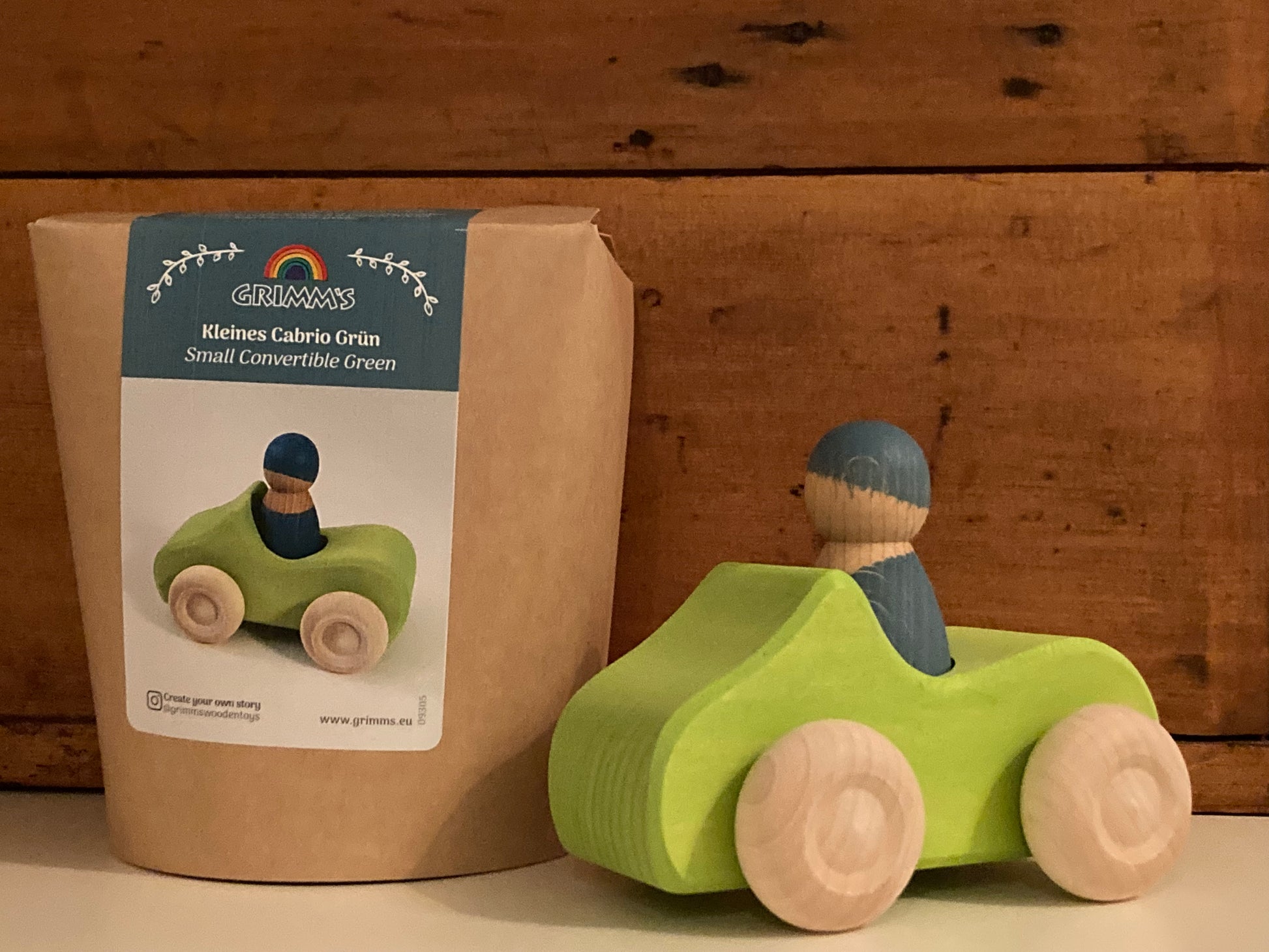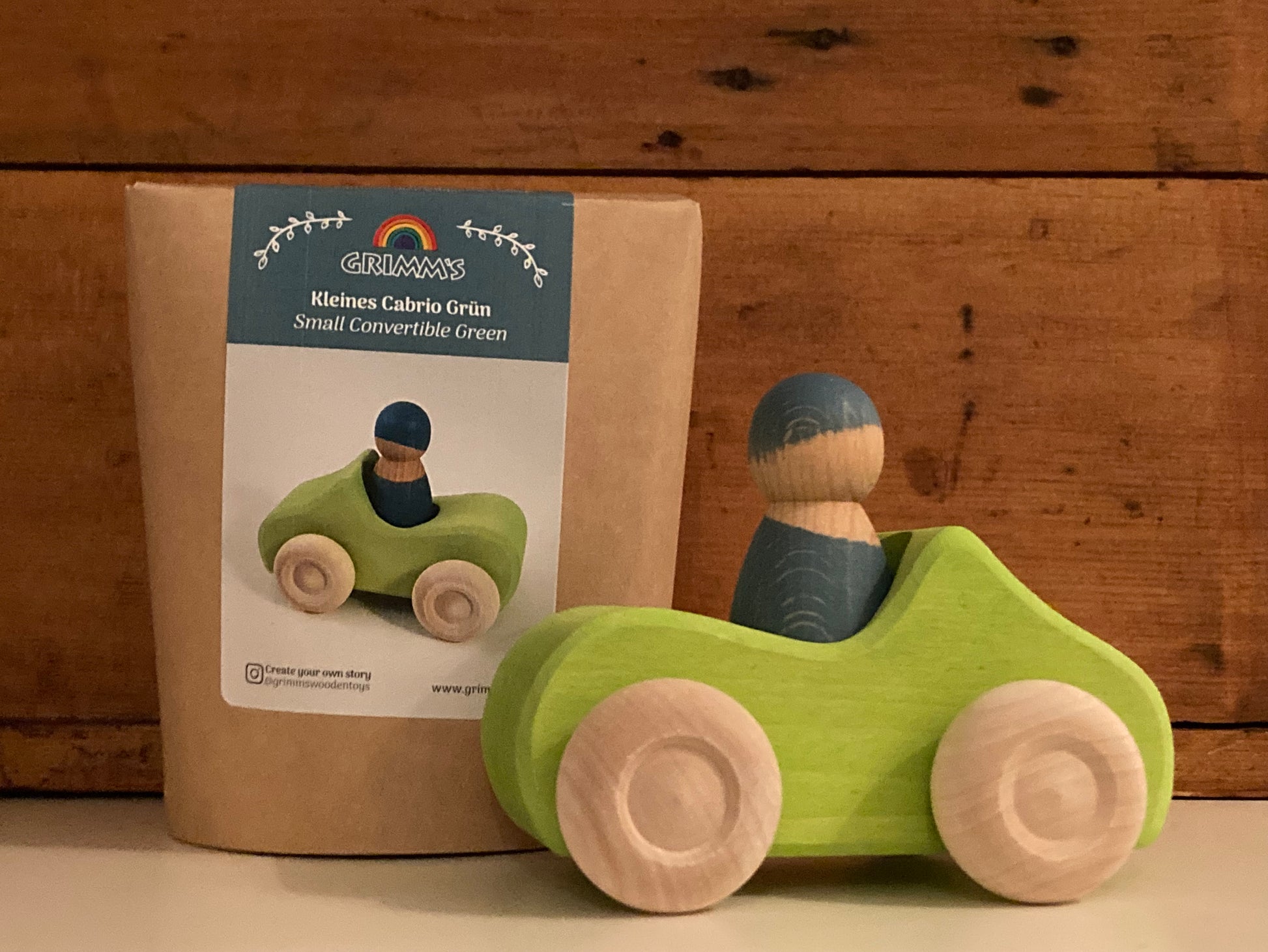 Les jouets en bois sur roues Grimm's sont non seulement d'une conception simple et impressionnante, mais ils conviennent également pour tout terrain, y compris les escapades à la campagne. Il y a beaucoup à découvrir au cours d'une enfance ludique, et il y a beaucoup de travail manuel et de traces uniques de la nature dans chaque jouet. Voici leur CONVERTIBLE VERT EN BOIS, avec CONDUCTEUR EN BOIS.