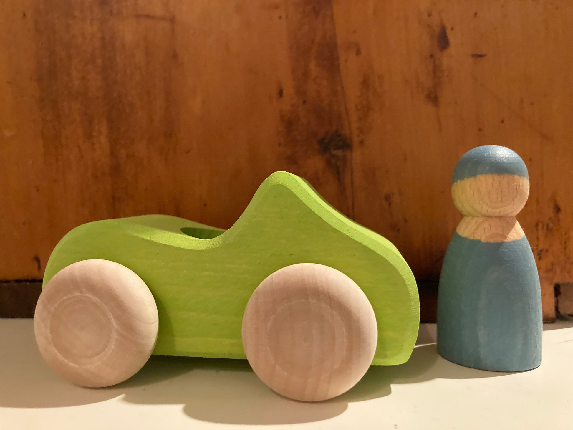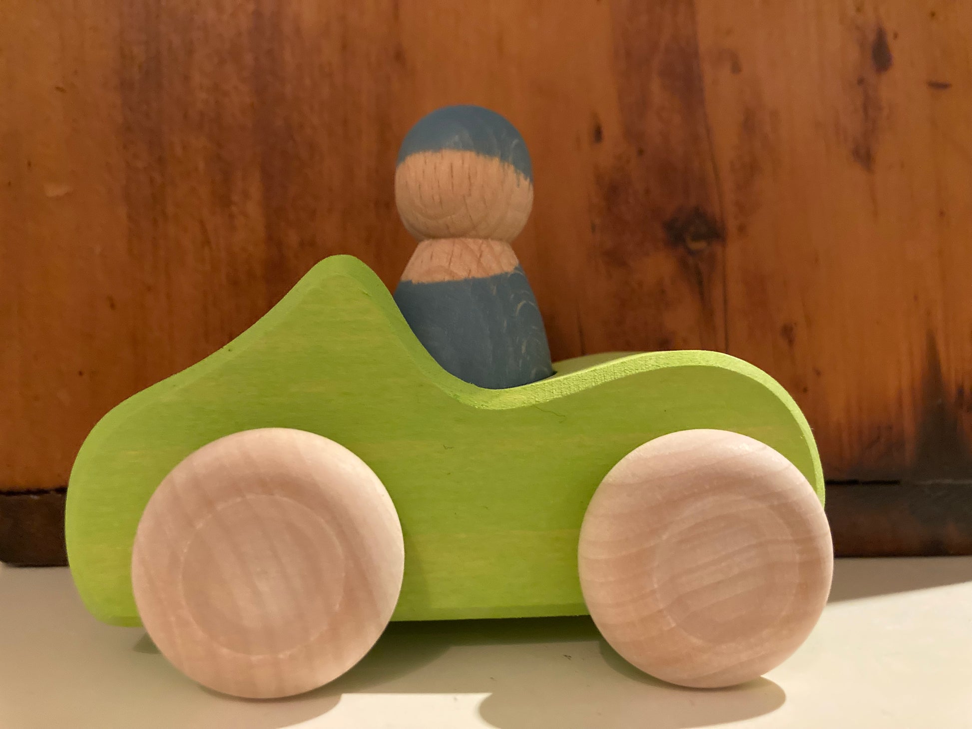 Voiture jouet en bois - VERT DÉCAPOTABLE avec chauffeur