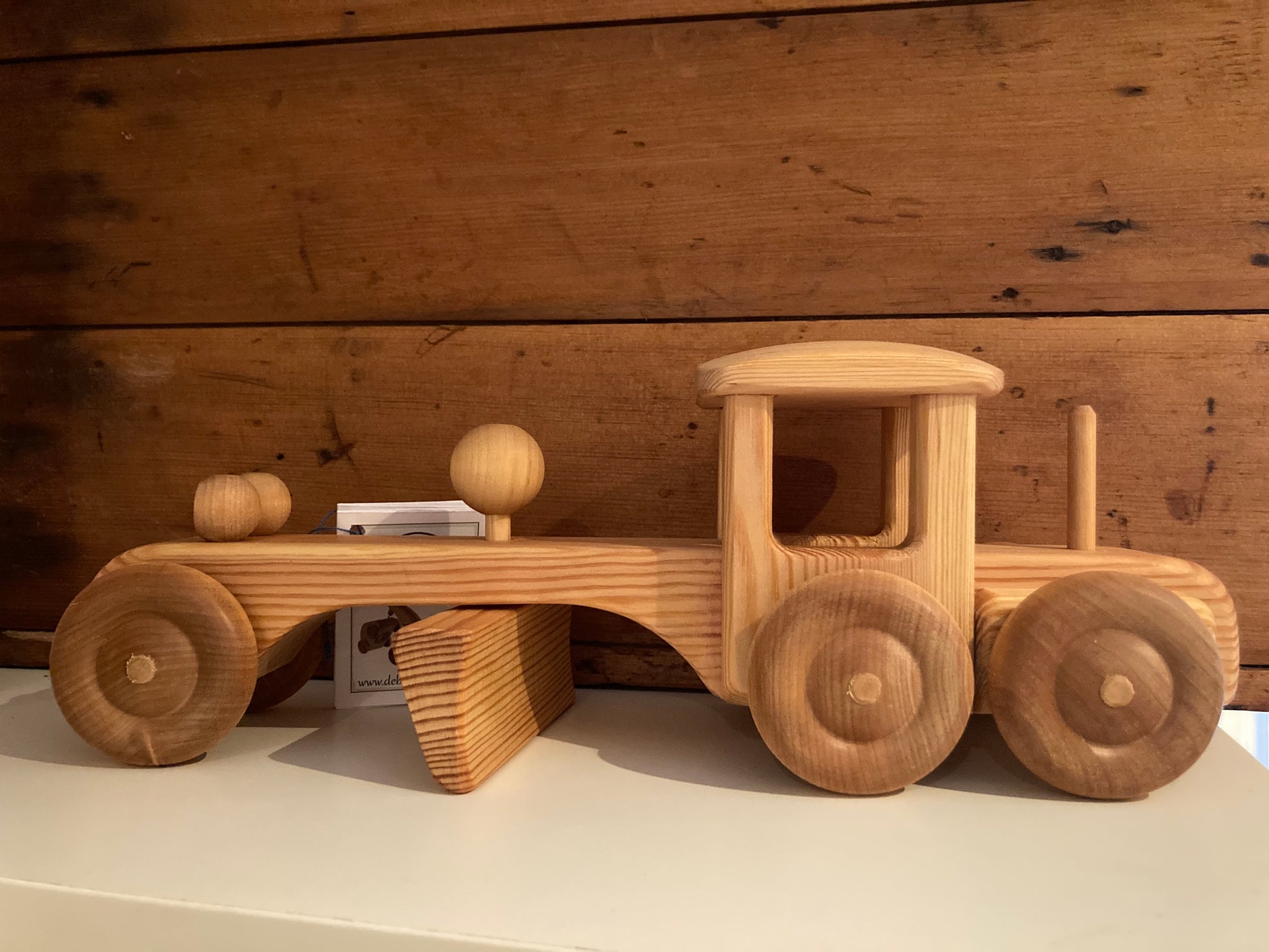 Jouets en bois de qualité de l'atelier Debresk en Suède. Des jouets en bois massif qui dureront toute une enfance de jeu. C'est le GROS BUS.