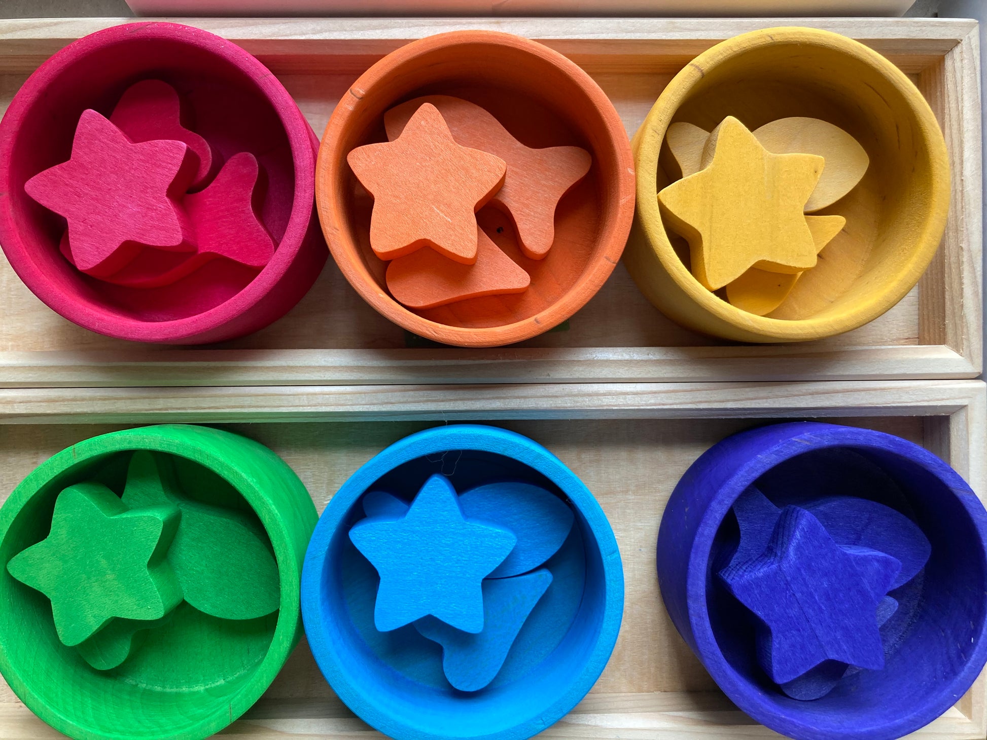 Jeu de jouets en bois - ENSEMBLE DE TRI BOLS ARC-EN-CIEL