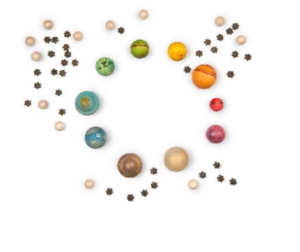 The DEAR UNIVERSE SET contains more than 50 wooden pieces / sizes from 12mm in diameter to 45mm in diameter (0.5 to 2inches). This set can be combined with Grapat's Wooden Perpetual Weekly Calendar (in English and in French). Sold separately.