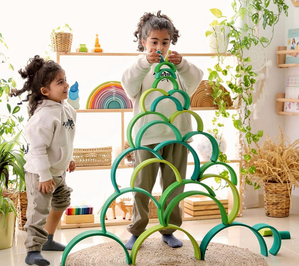 Jouet en bois - TUNNEL ARC-EN-CIEL VERT, 2 choix, 12 pièces chacun !