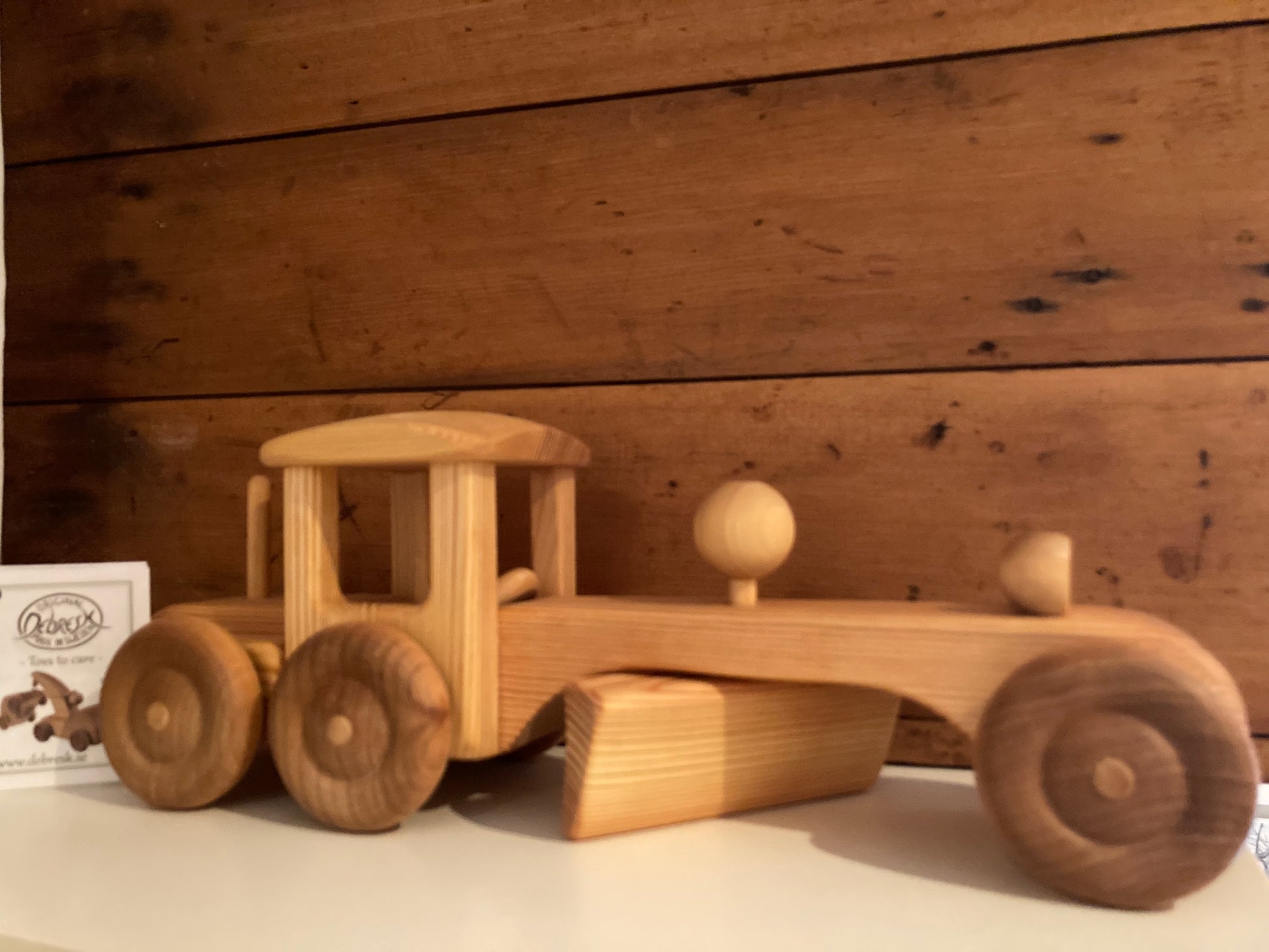 Une NIVELEUSE DE ROUTE en bois naturel, avec des roues qui tournent réellement, un magnifique savoir-faire de Debresk en Suède. Un jouet de qualité pour stimuler le jeu créatif.