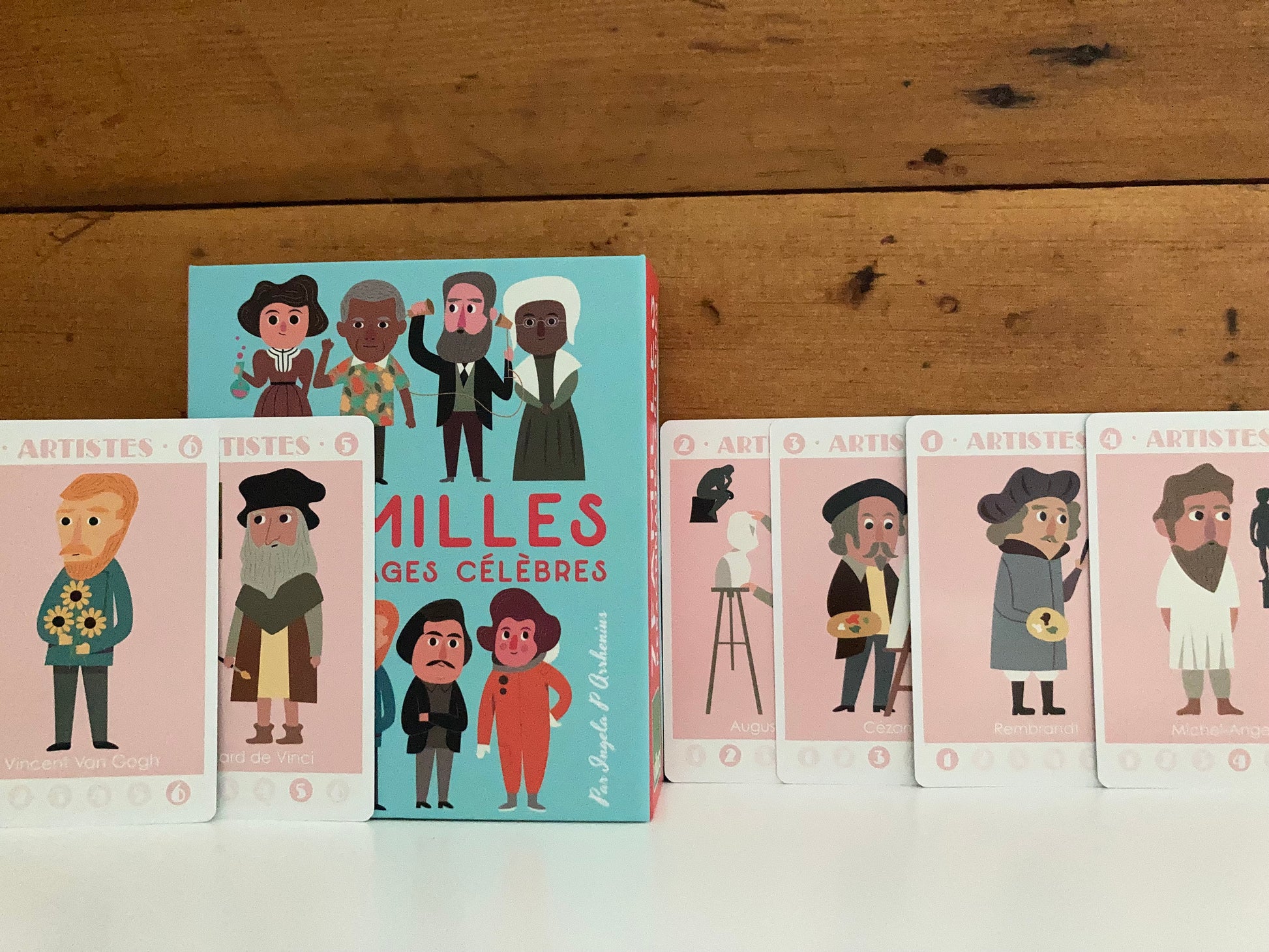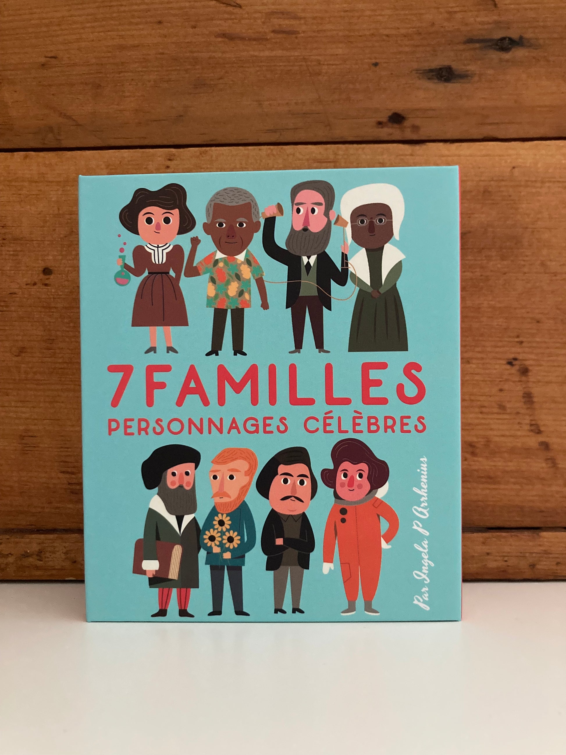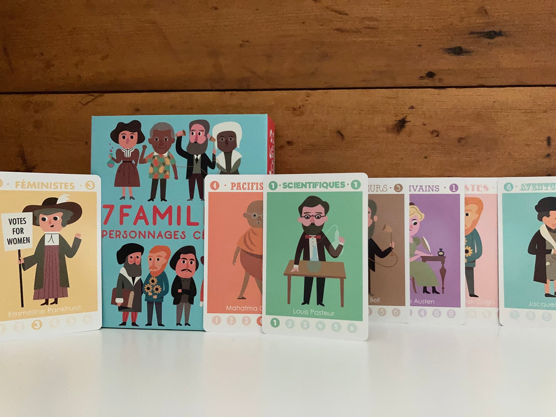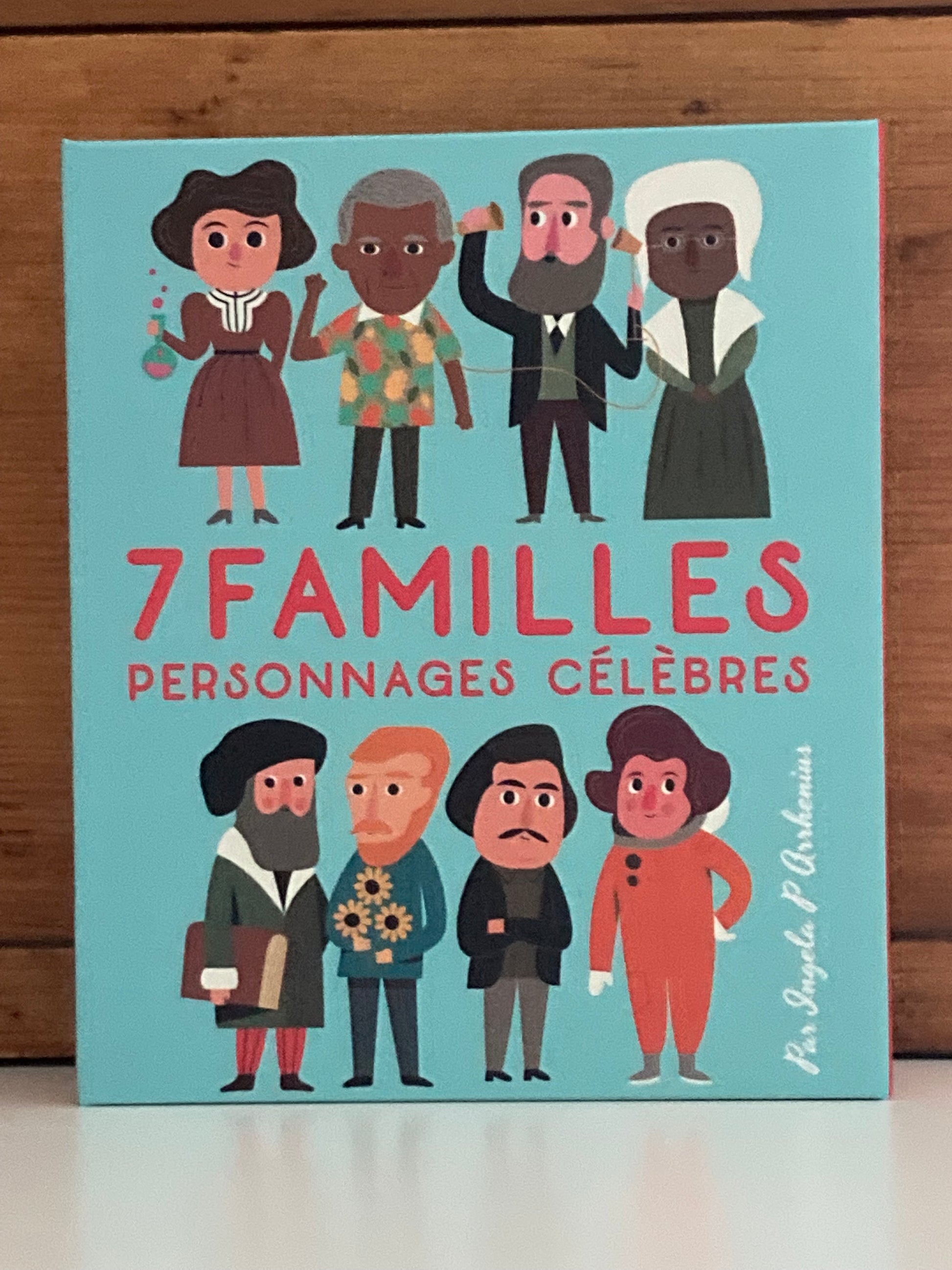 "7 familles de personnages célèbres!" Card descriptions are in french!