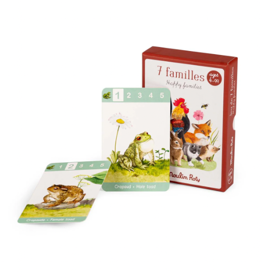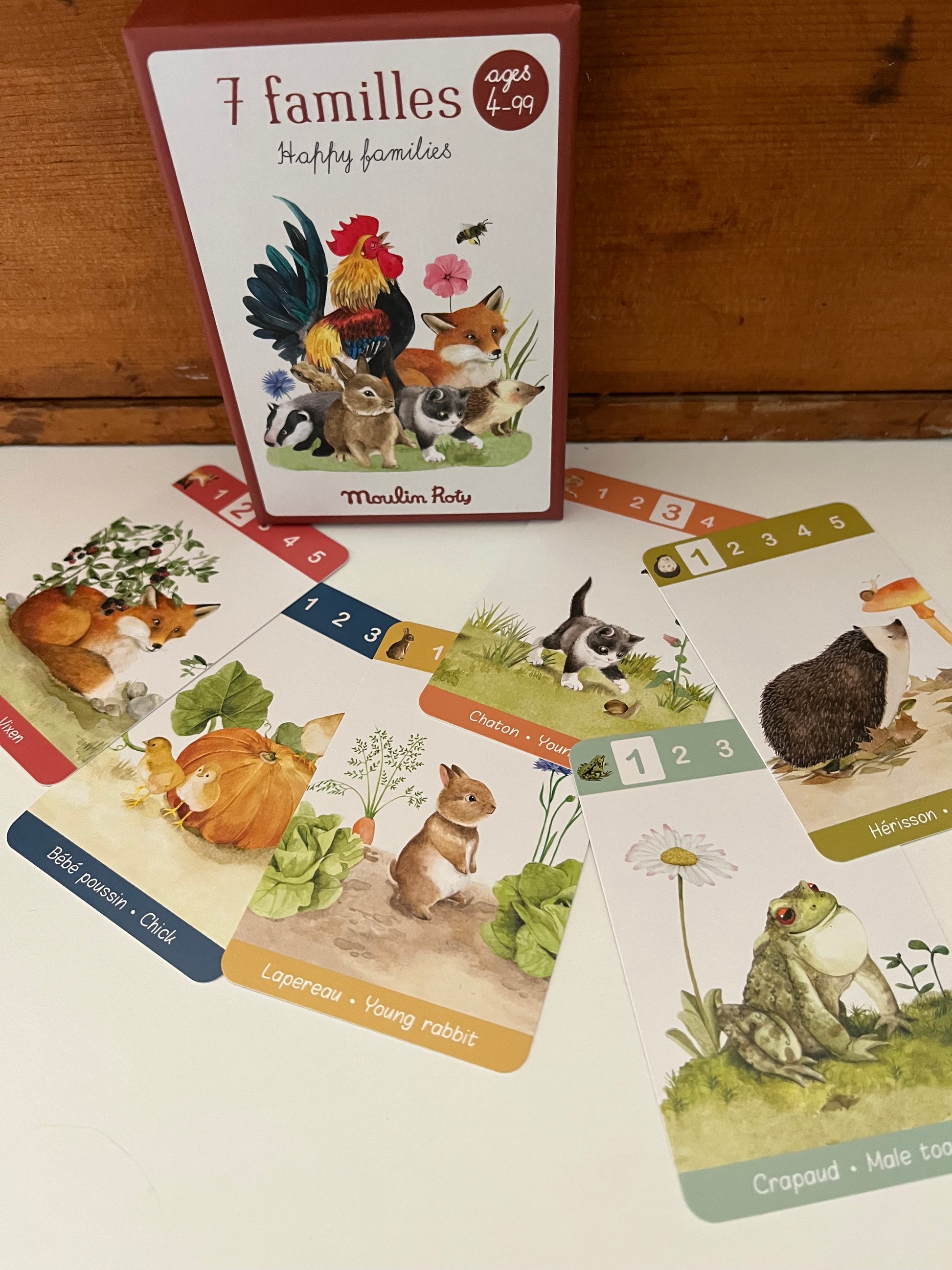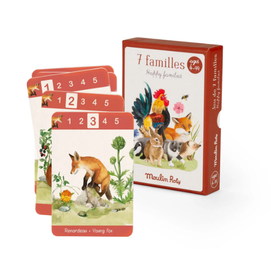Discover the 7 HAPPY FAMILIES card game from Le Jardin du Moulin collection by Moulin Roty, France. For children from 4 years old, to 99!