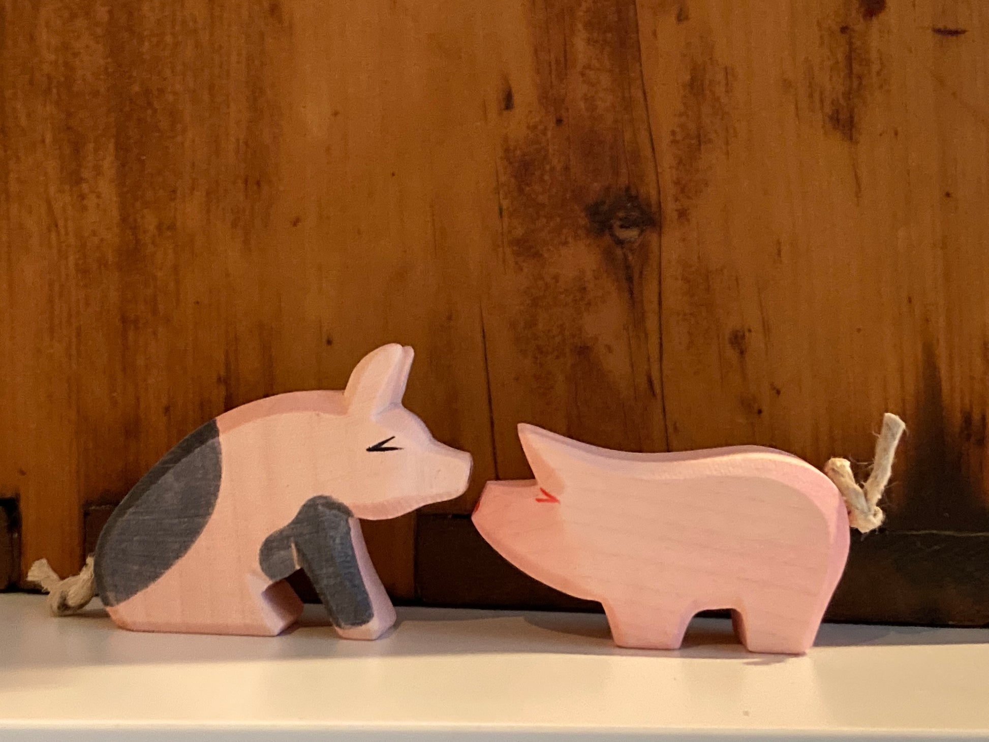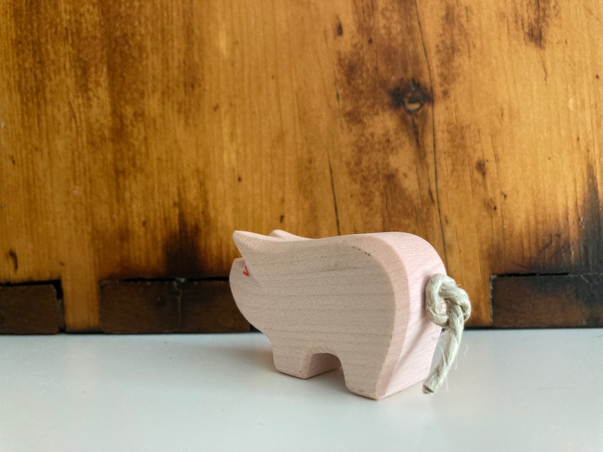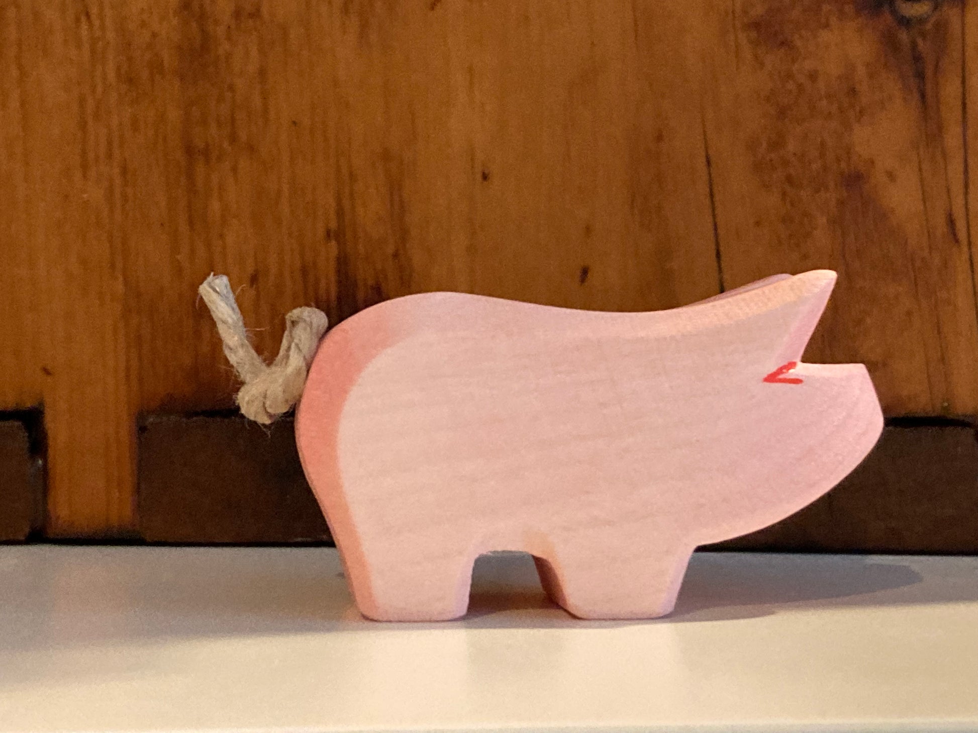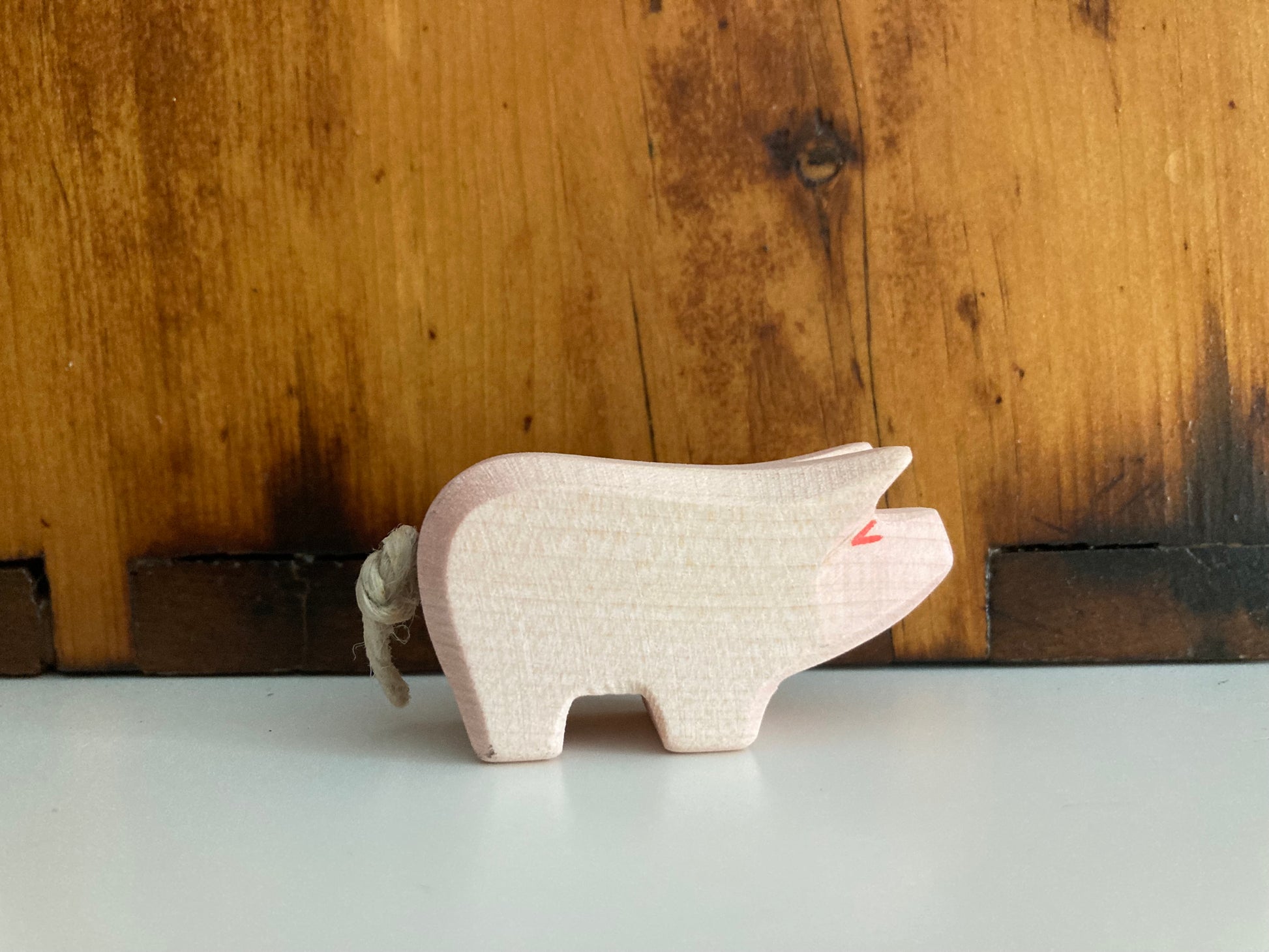 This LITTLE PINK PIGLET is 3cm tall x5cm long (1 x2inches), with a true, corded curly tail. Little Piggy definitely needs a friend! Like all Ostheimer collectable figures they are hand-carved from a solid piece of wood, and then hand painted. To last a Childhood of play.