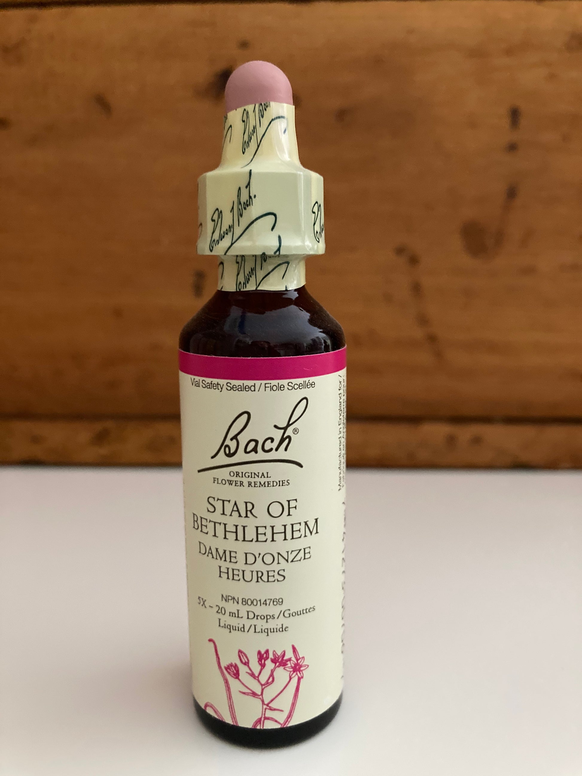 Created by Dr. Edward Bach. Bach Flower Remedies Limited 2009. Formulated in London, England, UK. 20ml glass vial and dropper.