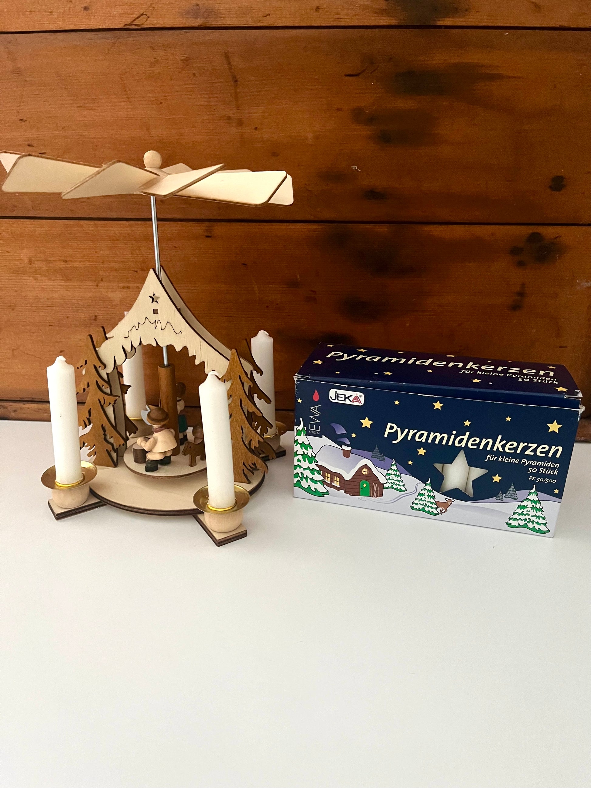 More Beeswax Candles available. Sold Separately. NOTE: The carousel is entirely made out of wood (except for the metal centre pole). Please never leave the carousel unattended while the candles are burning!