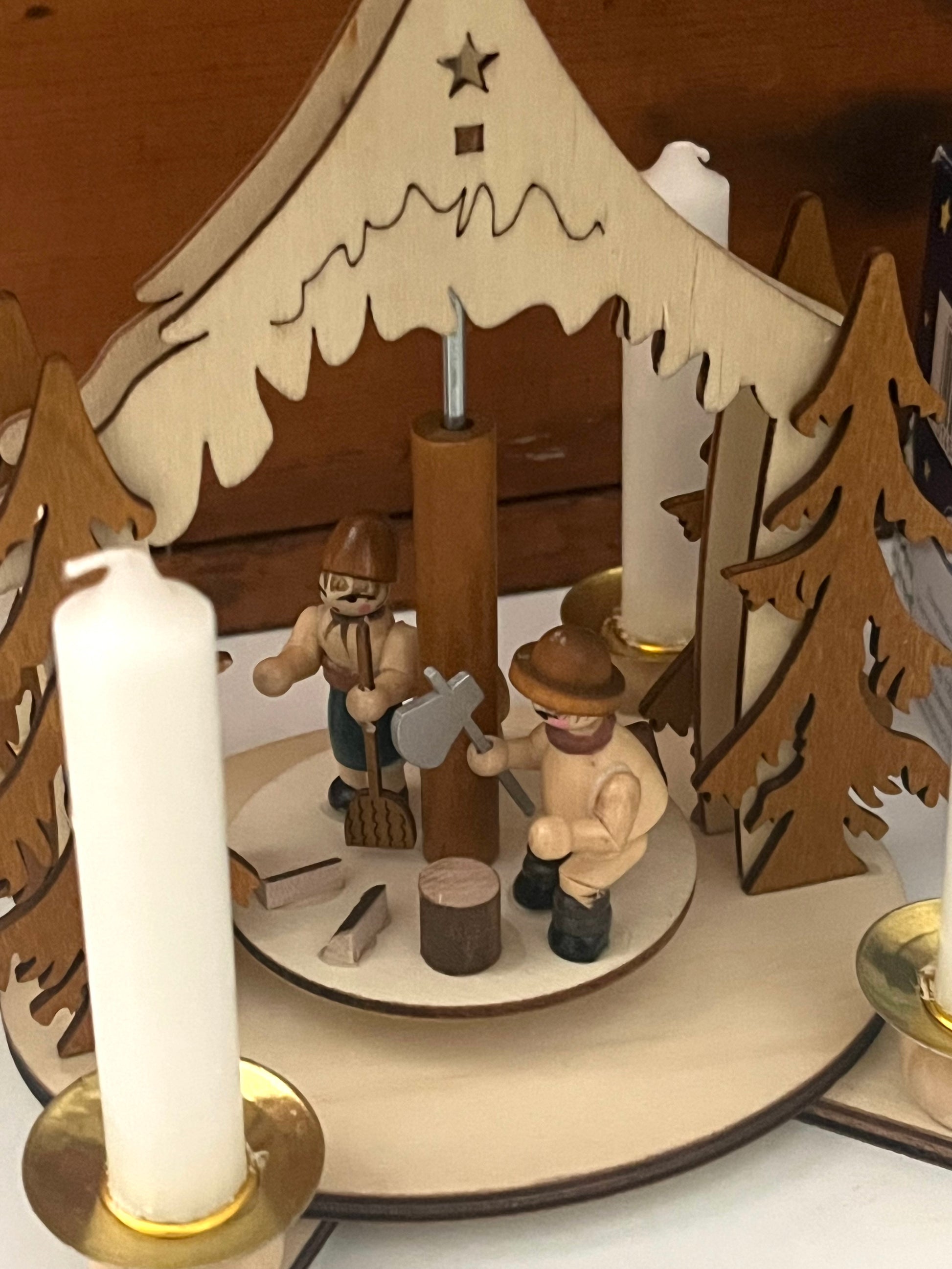 Beeswax Candle Wooden Carousel - WOODCUTTER FAMILY, with 25 Candles!