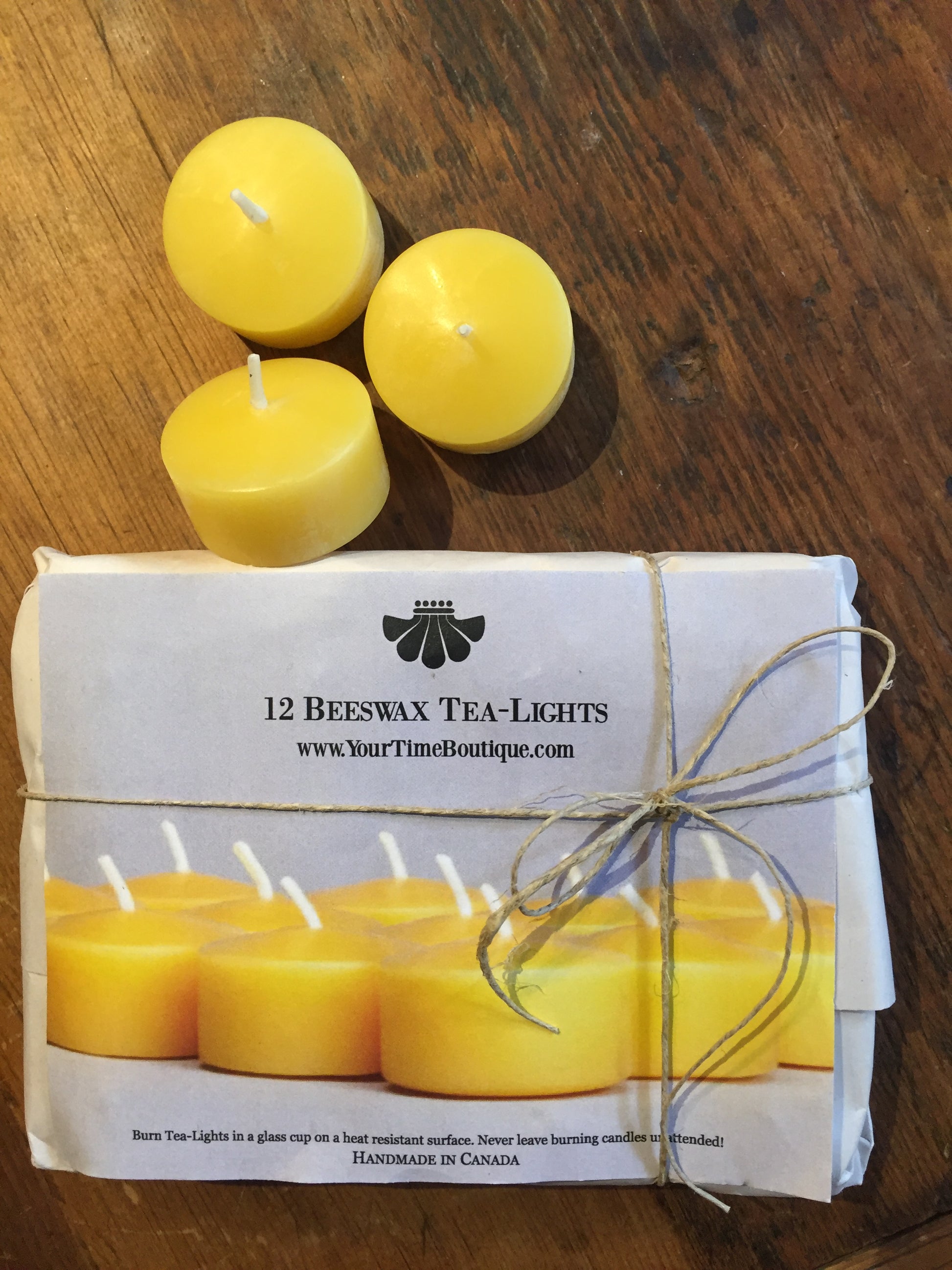 Tea Lights. Handmade Pure Beeswax Candles, from Your Time Boutique in Ontario, Canada. They smell like honey, they burn beautifully. You will not find nicer candles.