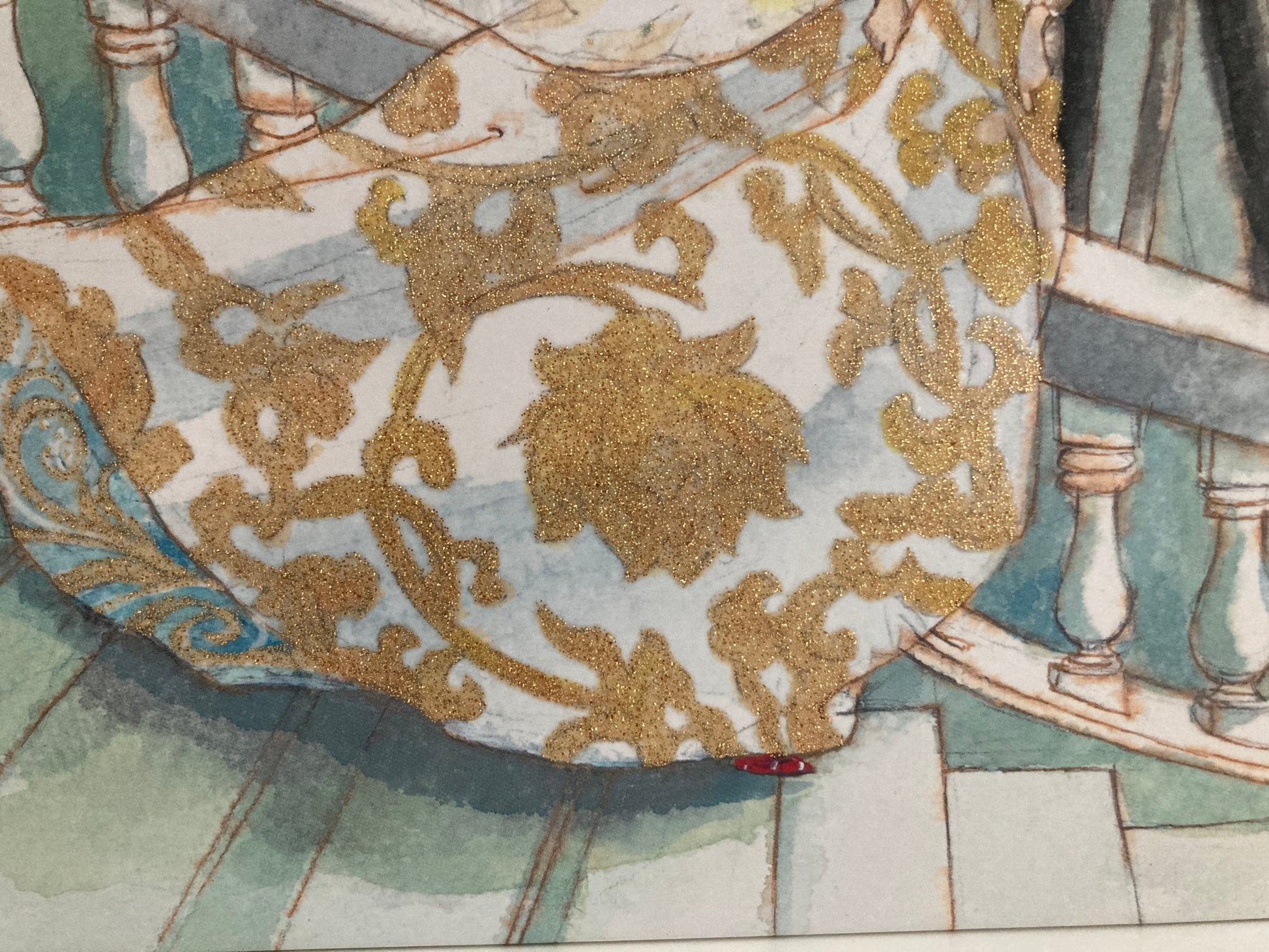 Grimm's classic Fairy Tale, CINDERELLA. With real gold gilding on her ball gown!