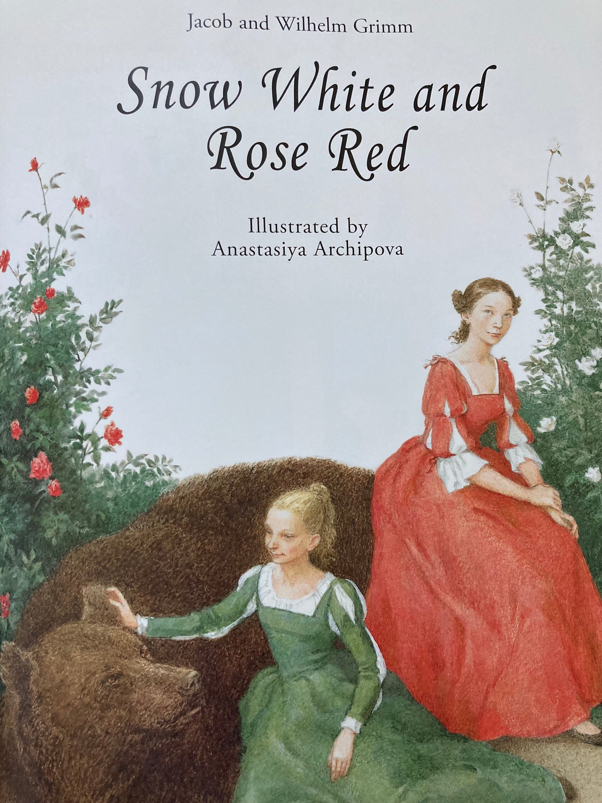 The child's classic Fairy Tale, SNOW WHITE AND ROSE RED, by the Brothers Jacob and Wilhelm Grimm. Beautiful illustrations by Anastasiya Archipova accompany the story of the sisters' goodness and kindness. And every year..."the two rose bushes by the door bore the loveliest roses one white and the other red."