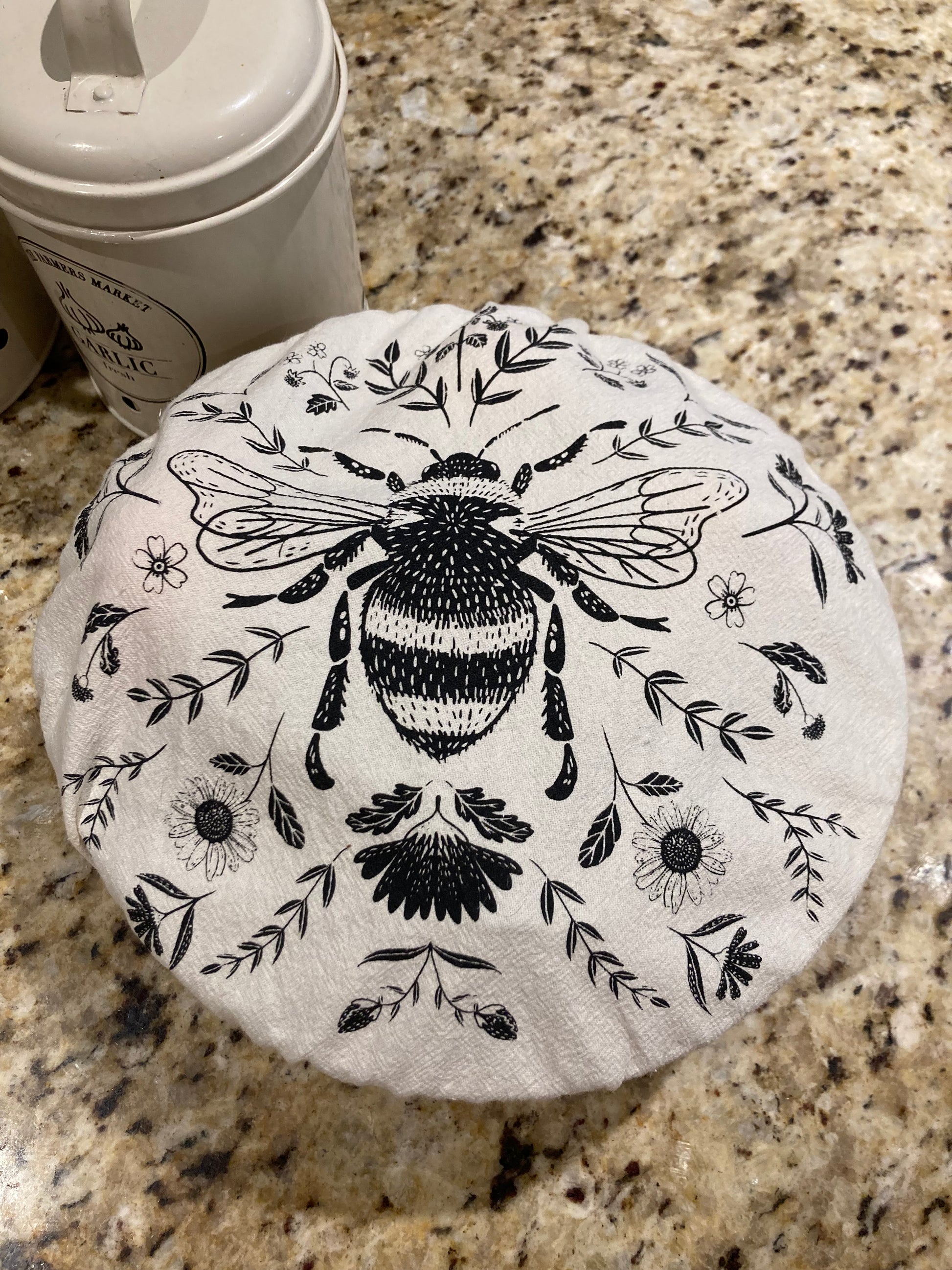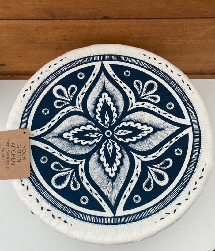 Please choose from the 10" LARGE BEE BOWL COVER in Charcoal Grey, or the 12" EXTRA-LARGE WILDFLOWER BOWL COVER in Dark Indigo Blue.