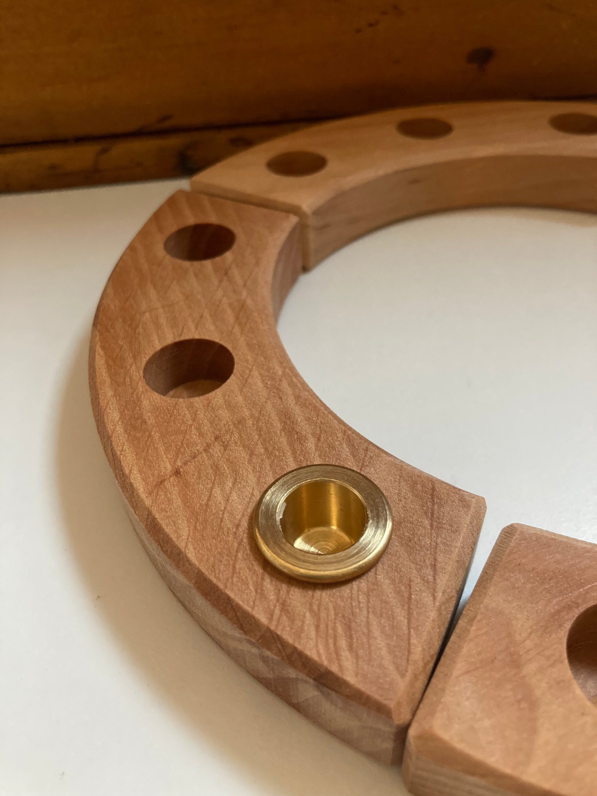 These are their BRASS CANDLE HOLDERS designed to use in their DECO WOODEN SPIRAL RINGS. Beeswax Candles sold separately.