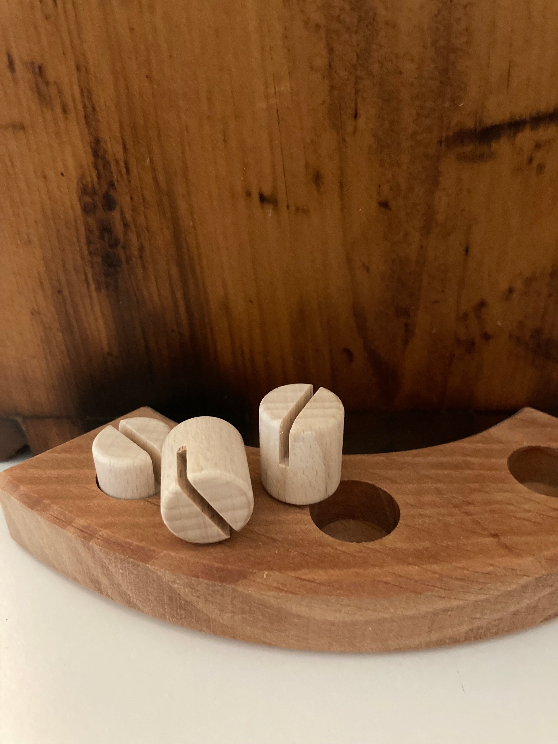 These are the WOODEN CARD HOLDERS for the DECO WOODEN RINGS by Grimm's. Sold in sets of three (3). Perfect for photographs, postcards, or any greeting card.