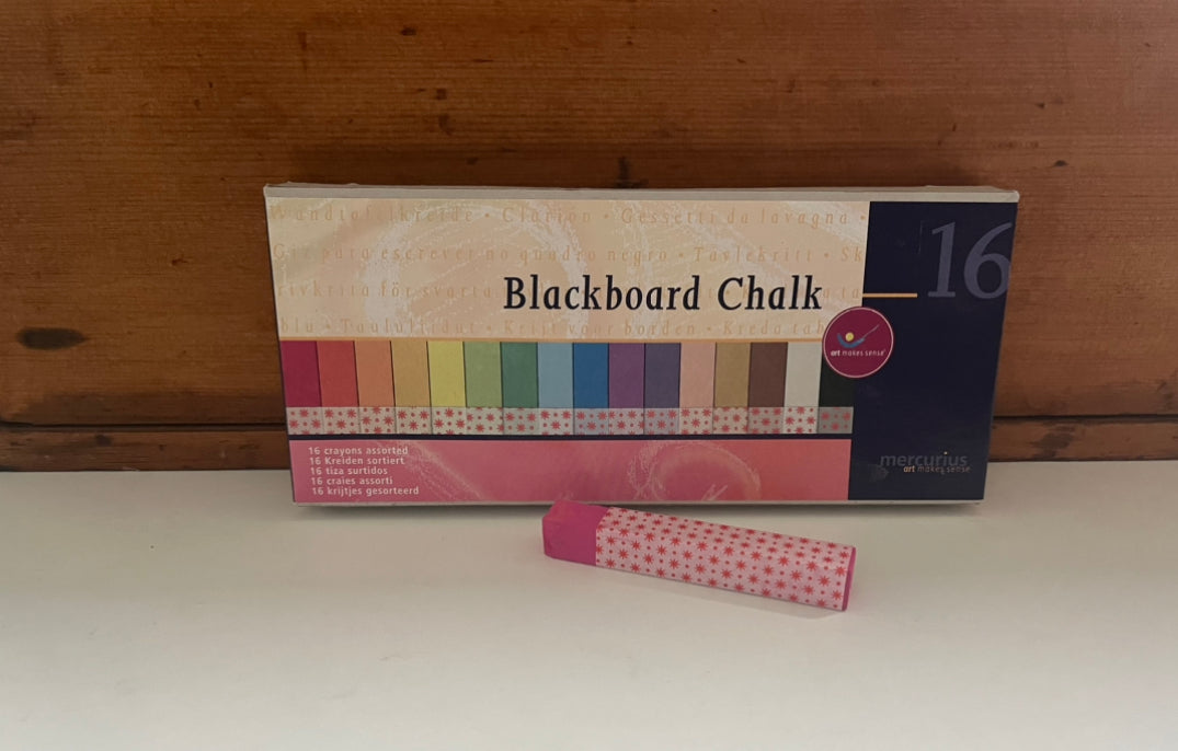 From Mercurius Canada, their highly pigmented BLACKBOARD CHALK used in Waldorf schools worldwide. 16 soft individually wrapped colours, to prolong the life, and minimize breakage!
