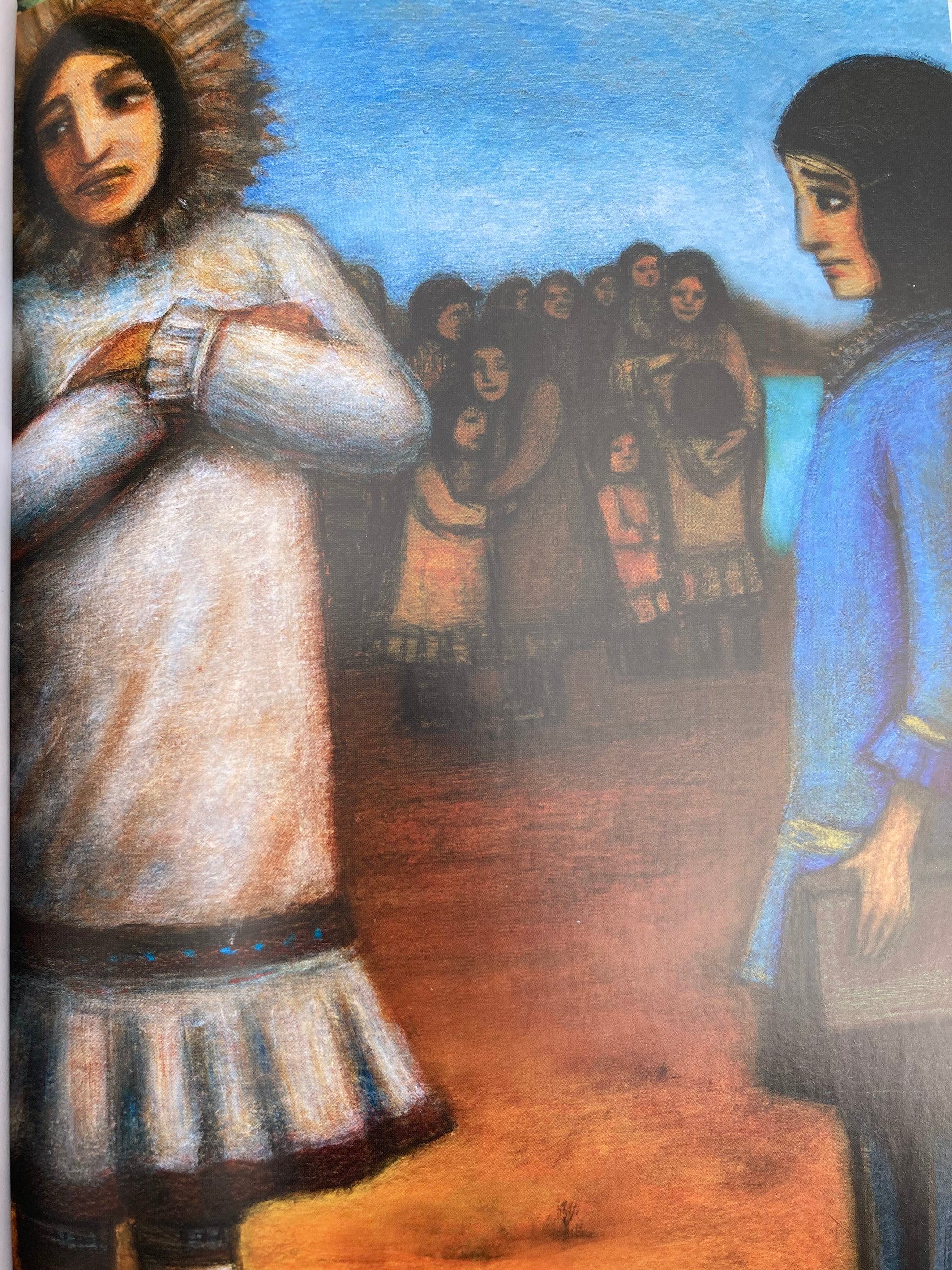 A STRANGER AT HOME follows the story of ten-year old Margaret-Olemaun as she returns home to her family. She has been away for two whole years, and she can hardly contain her excitement to see them again! But, when she stands before them...her mother shouts out: "Not my girl!" She does not recognize her own daughter anymore! Margaret must learn her language again... she must learn to eat her family's food again... Sadly, she has become a stranger to her own people.