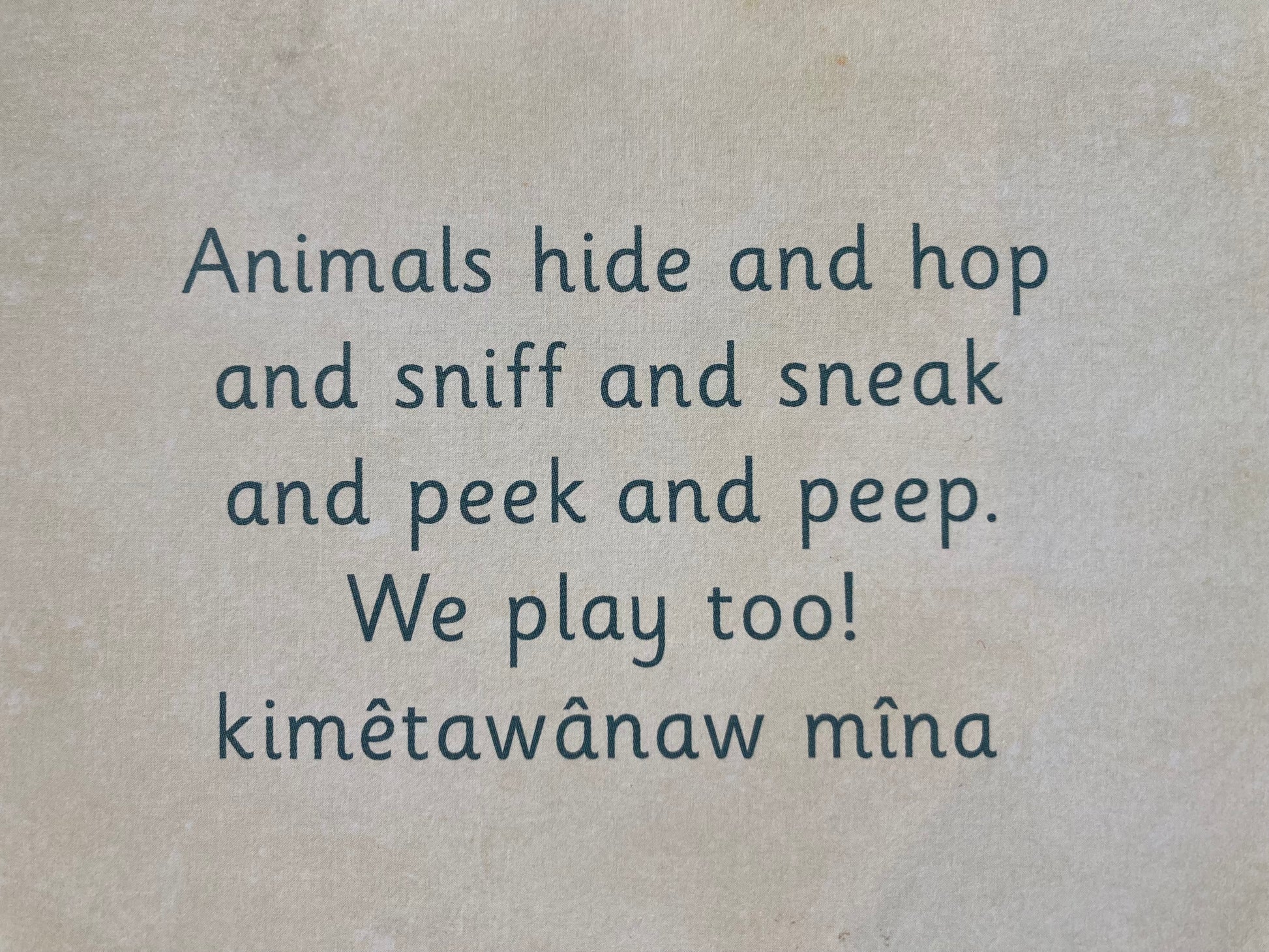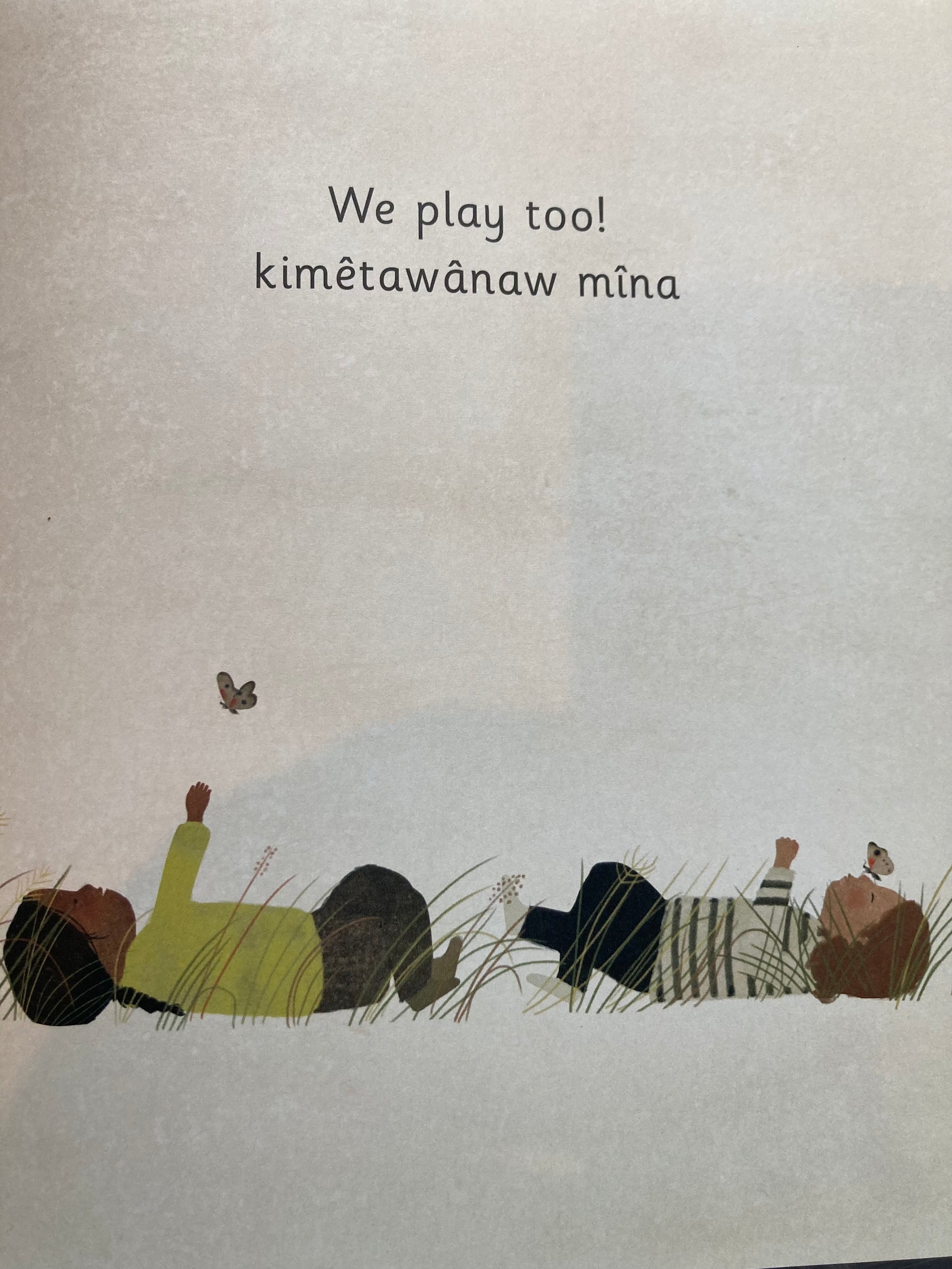 "kimetawanaw" in Cree means WE ALL PLAY in English, and is pronounced: kit-may-TUH-waa-now. We all love to play!