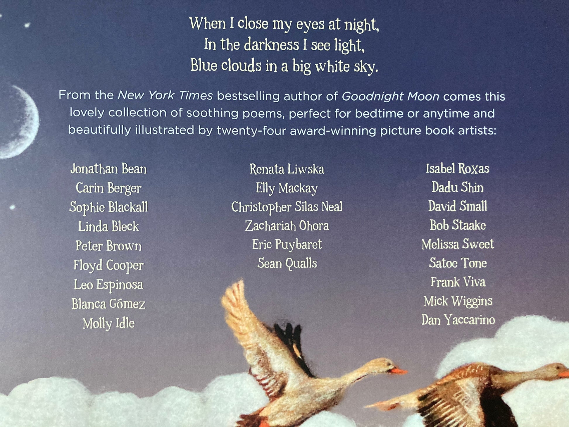 This is a lovely collection of lyrical poems, perfect for bedtime, and beautifully illustrated by twenty four award winning picture book artists (please see the list in the picture on the left). Biographies of the artists, and why they choose to be a part of this wonderful collection of children's poetry, are included at the back of the book.