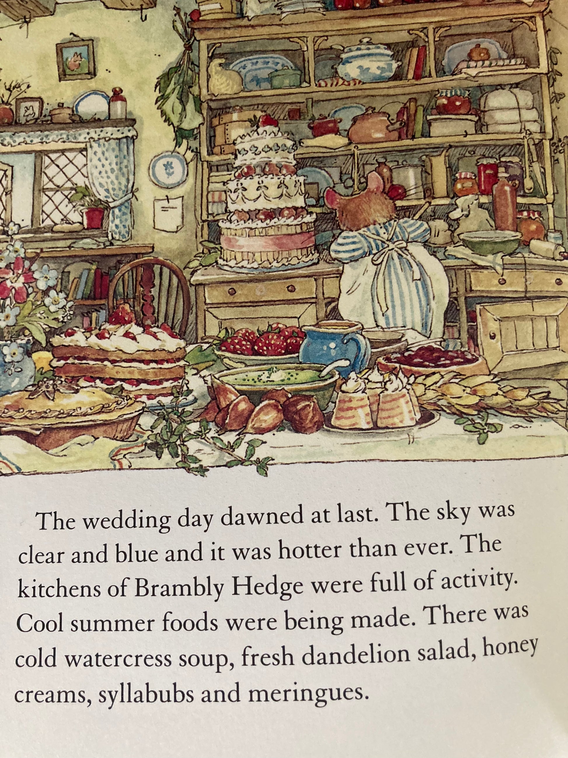 In SUMMER STORY at BRAMBLY HEDGE, the sky was deep blue and the sun never faltered, it had been a long hot summer! All along Brambly Hedge, the mice did their best to keep cool. Poppy Eyebright sought refuge in the mossy shadows of the mill wheel; Dusty Dogwood took to walking by the banks of the cooling stream. Dusty and Poppy spent more and more time together, so no one was at all surprised when they announced their engagement. They decided on a very unusual setting for the wedding ceremony, but even they didn't realise just how unusual it was to prove to be!