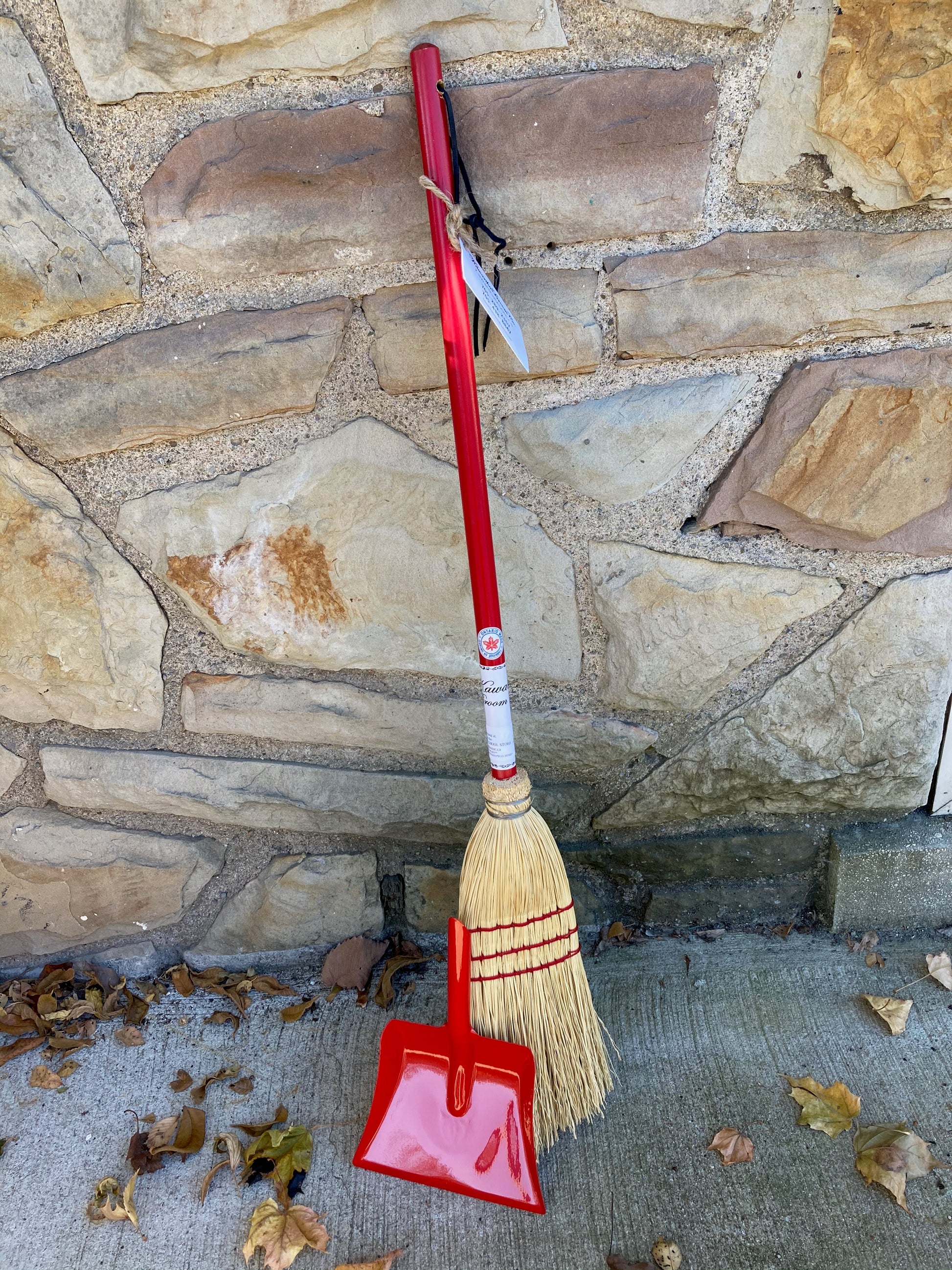 A beautiful, high quality Child's Wooden Broom from the Kwartha Broom Company in Kirkfield, Ontario. Paired with a bright red, metal Dust Pan. Perfect for any play house.