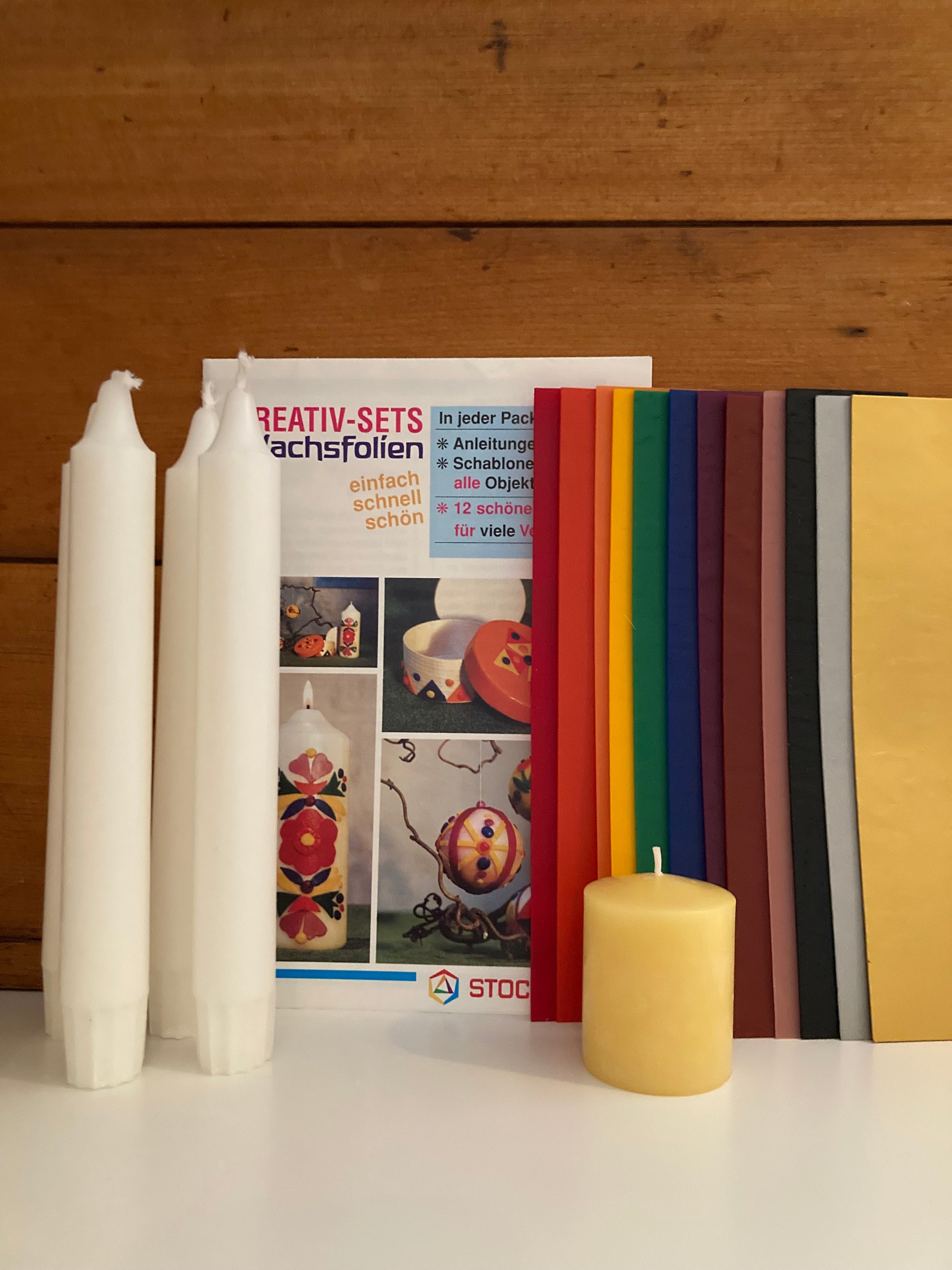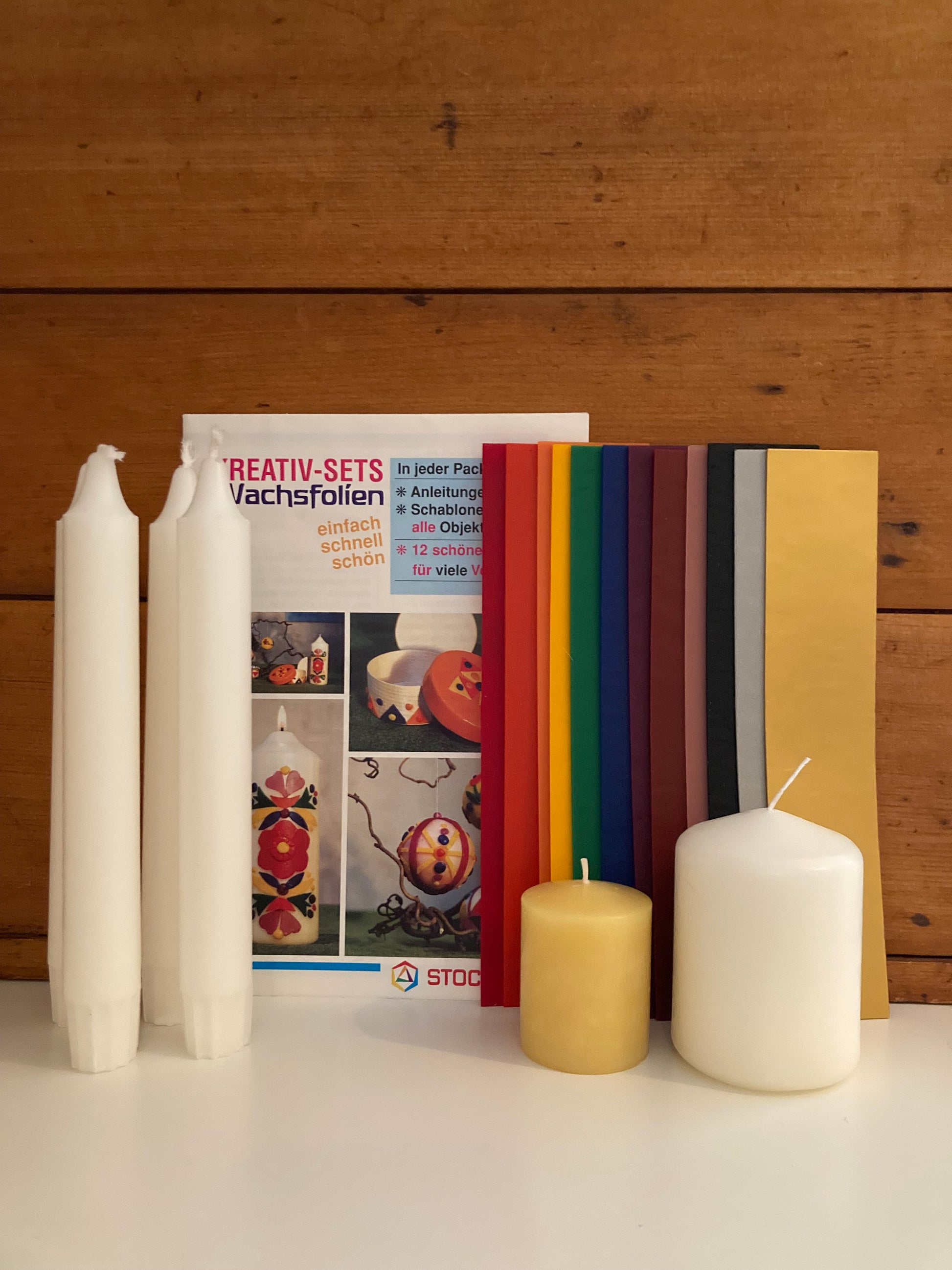 This CANDLE DECORATING BEESWAX KIT craft set includes Stockmar decorative beeswax, in 12 colour strips, 4 white taper candles to decorate and a solid votive candle to decorate. The 4 WHITE CANDLES can be used as DECORATIVE ADVENT CANDLES.