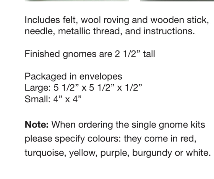 Crafting Kits - Felt GNOMES , makes 1 Gnome in a choice of 6 colours!