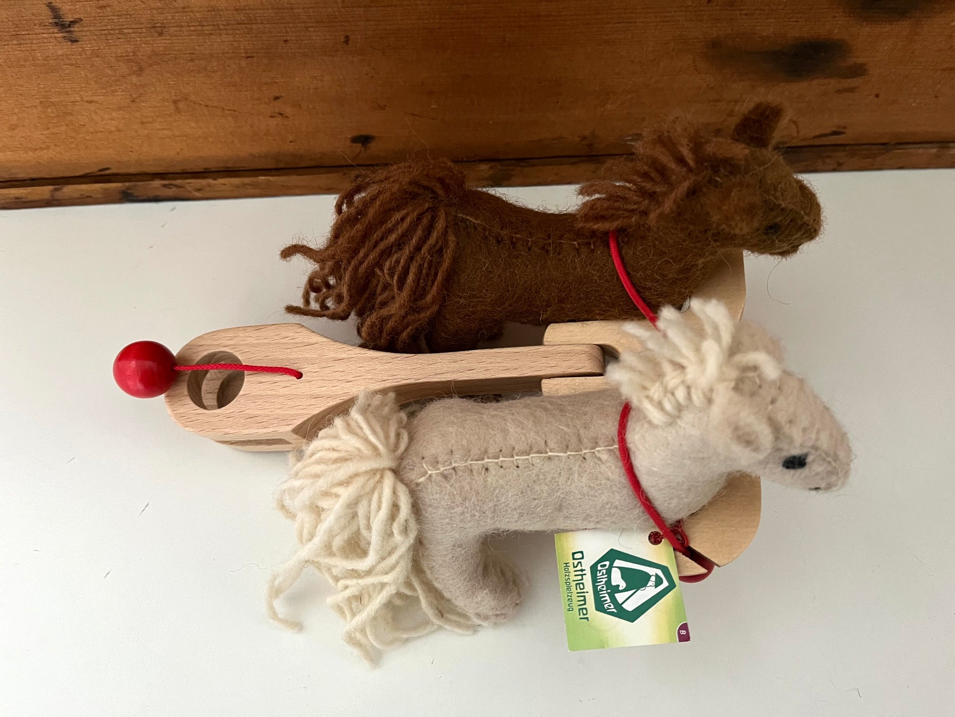 The felt horses are from Papoose Toys. Four colour coat choices available. See more from Papoose! Sold separately.