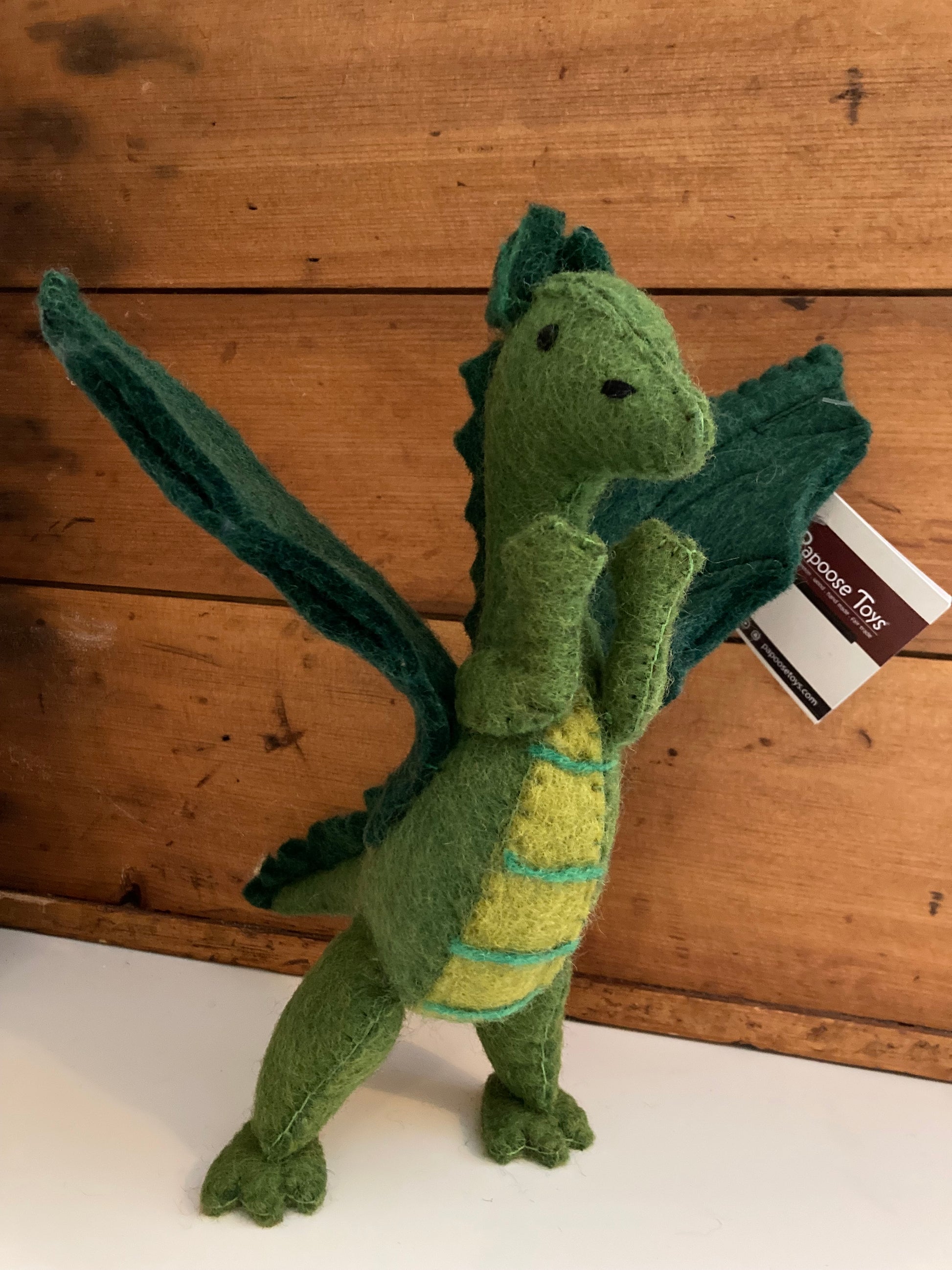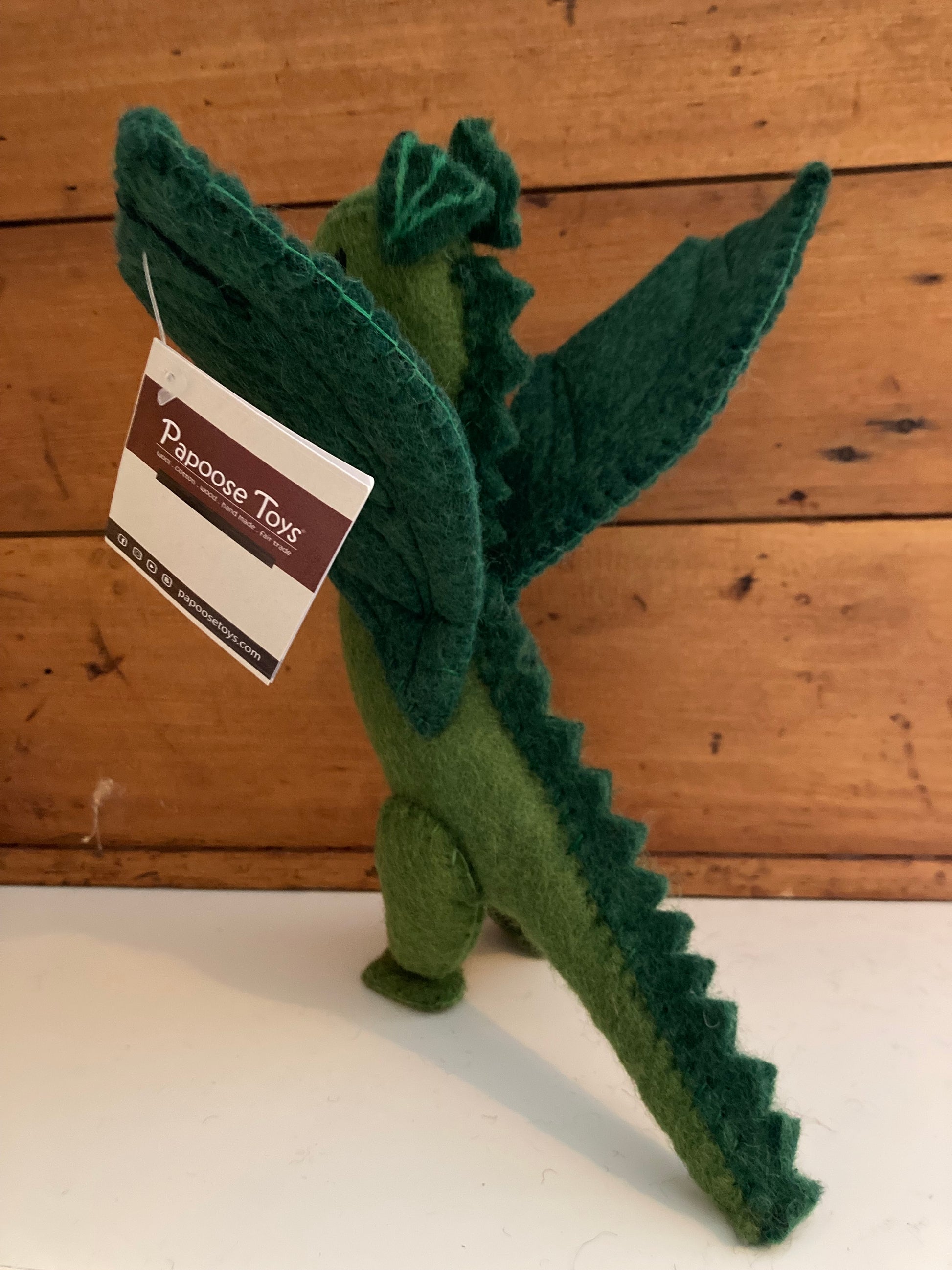 This is the GREEN DRAGON by Papoose Toys. Also sold as a set of 3 Dragons, sold separately. View all Felted Papoose Toys.